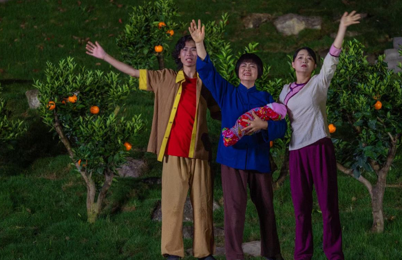 The performance begins with a group of old boatmen singing haozi with bare upper bodies and white cloth on their heads while they pull a boat. It features more than 20 long-lost haozi songs, telling the touching stories of an old boatman and his fellow villagers relocating to support the construction of the Three Gorges Project.