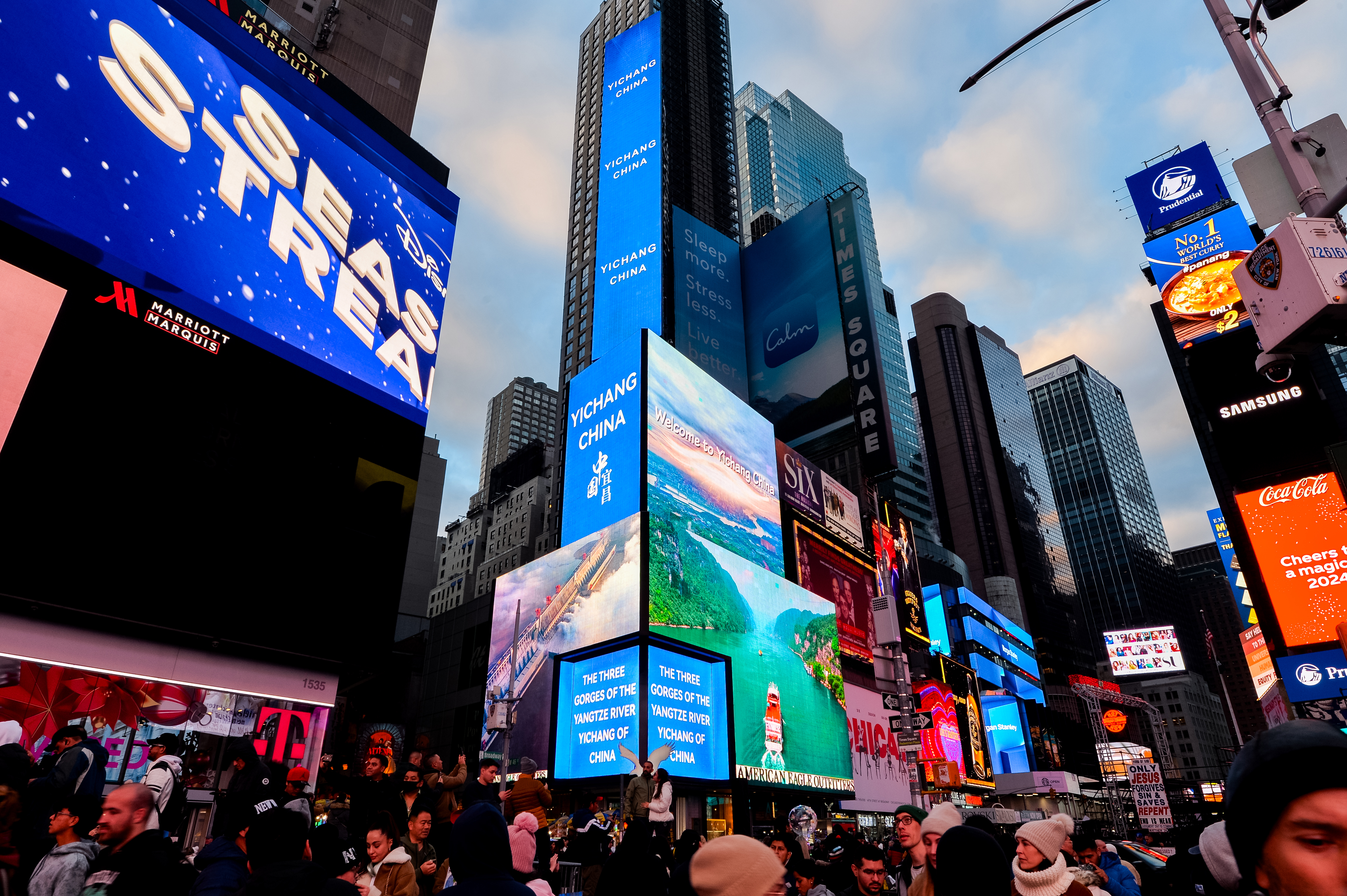 The "Welcome to Yichang China" promotional video appeared on screens in Times Square, New York, on January 1.