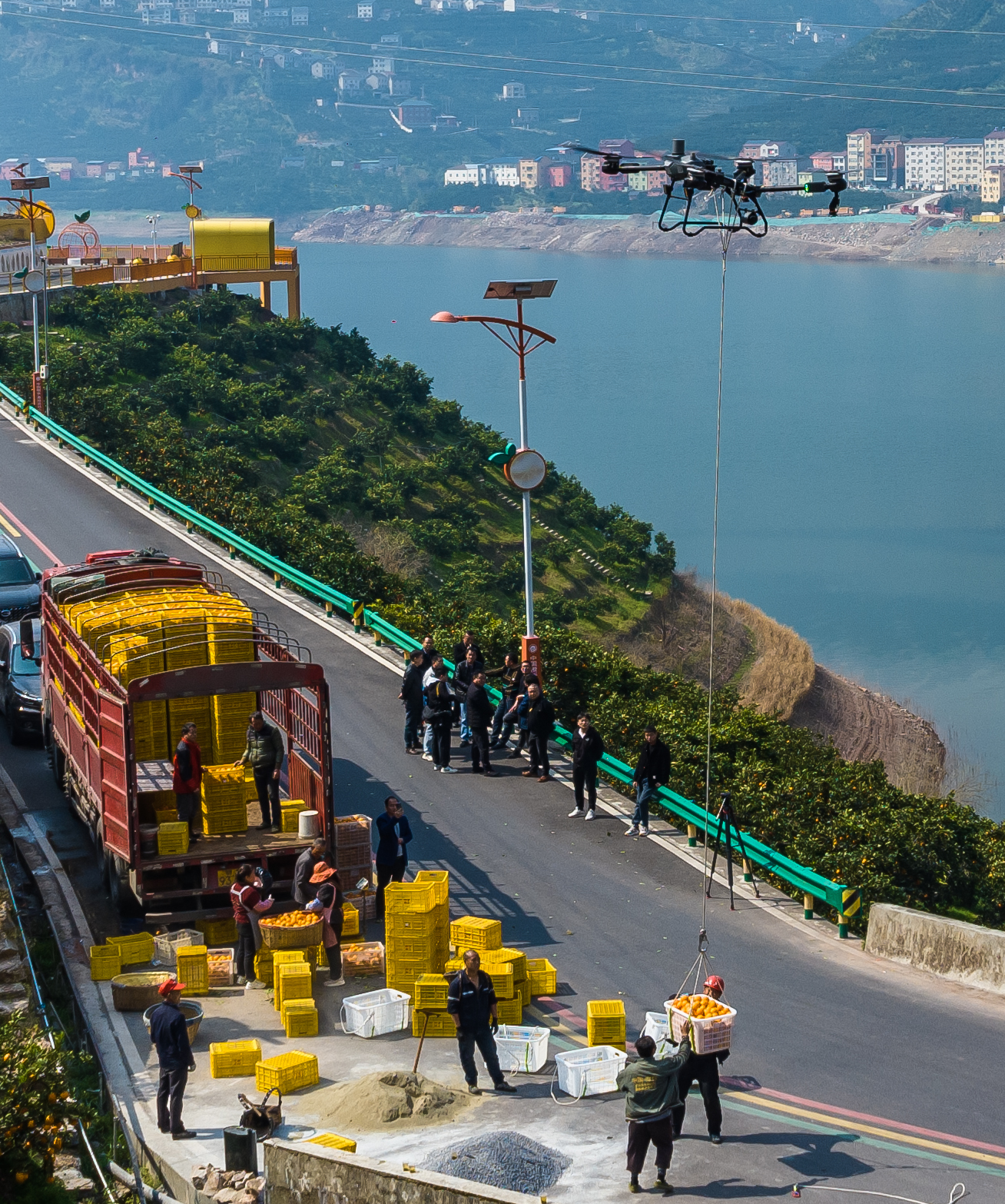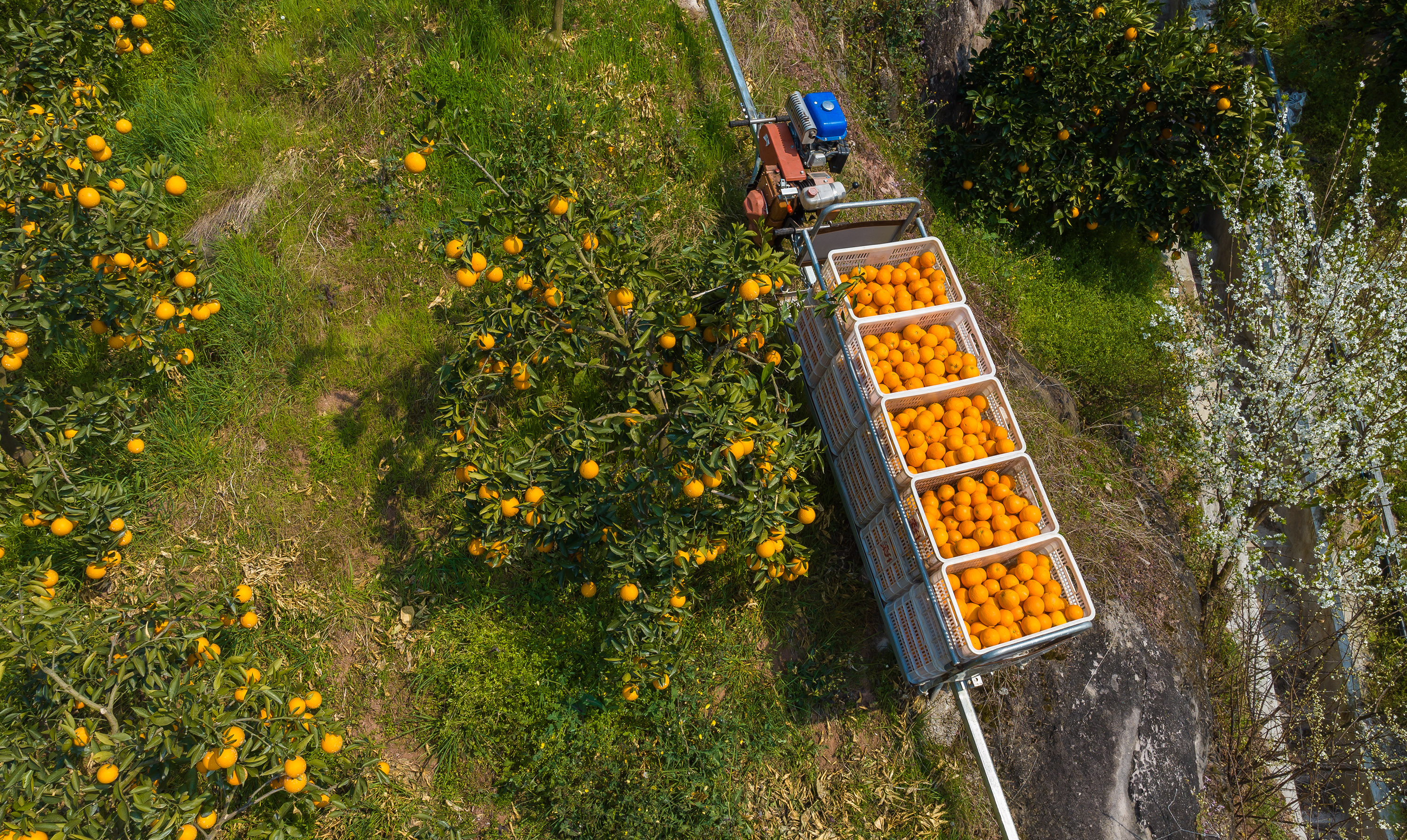 Villagers in Longkou Village have started using drones to transport freshly harvested navel oranges. In recent years, Zigui in Yichang has constructed over 1,700 rail carriers spanning a total length of 356,000 meters to transport navel oranges.