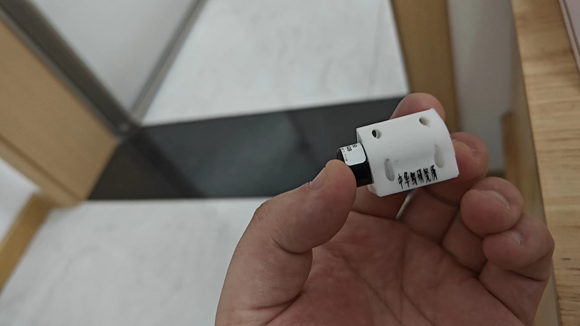 The 3D printed modules and the tracking sonar devices.Photo by Shen Jing