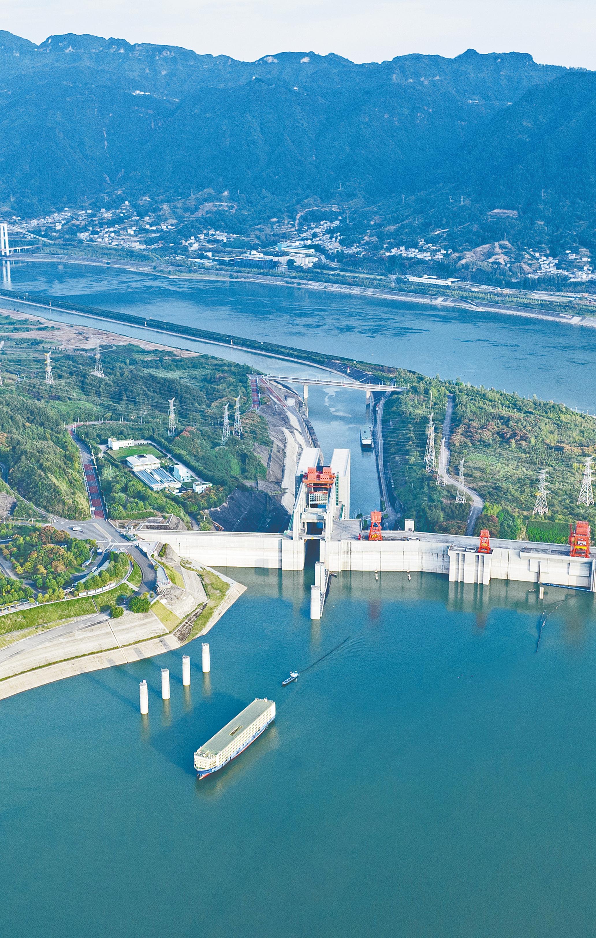 The Three Gorges ship lift, along with the five-tier ship locks of the Three Gorges Dam and the Gezhouba ship locks, has significantly improved navigation efficiency at the dams.