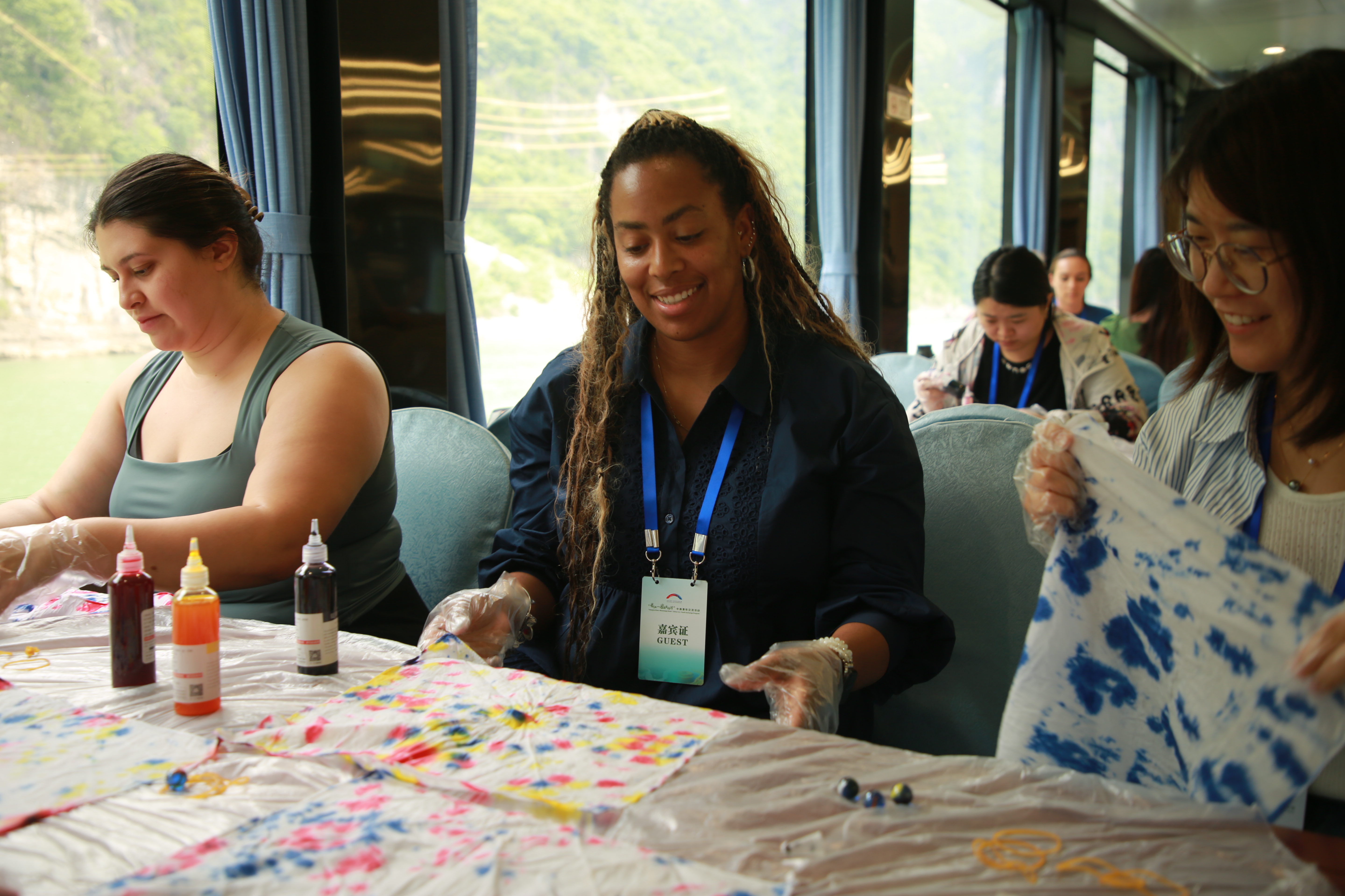 The youth also embarked on a Yangtze River cruise, where they had the opportunity to experience the traditional Chinese tie-dye craft and enjoy the scenic beauty of the river. Mason Smith, a student at the University of California, Los Angeles, remarked that the openness of the tie-dye creation process was full of surprises and fun.
