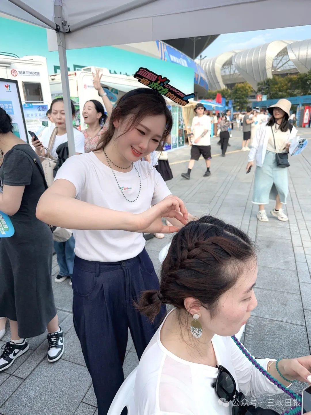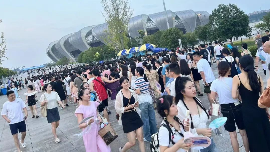 By the afternoon, fans had formed long queues outside the venue. The waiting area included photo walls, fan gifts, free hair braiding services, karaoke games, and a Yichang local product sale market.