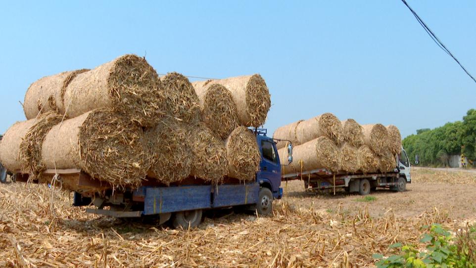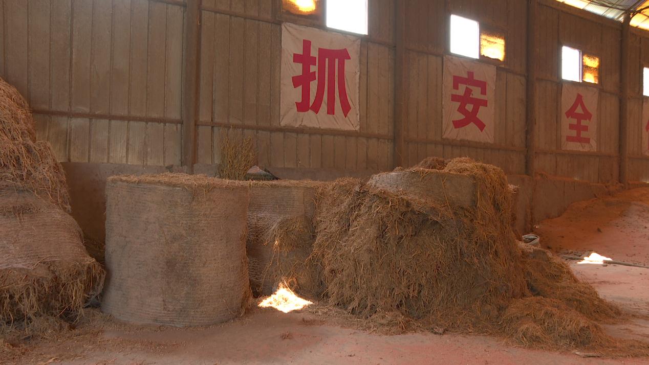 Straw bales at the collection station.Zhijiang City has established 18 specialized straw collection and transportation cooperatives as well as 11 village-level straw collection and storage stations. They have developed several usages for the straw, such as turning them into feed, fuel, fertilizer, raw materials, and breeding materials.
