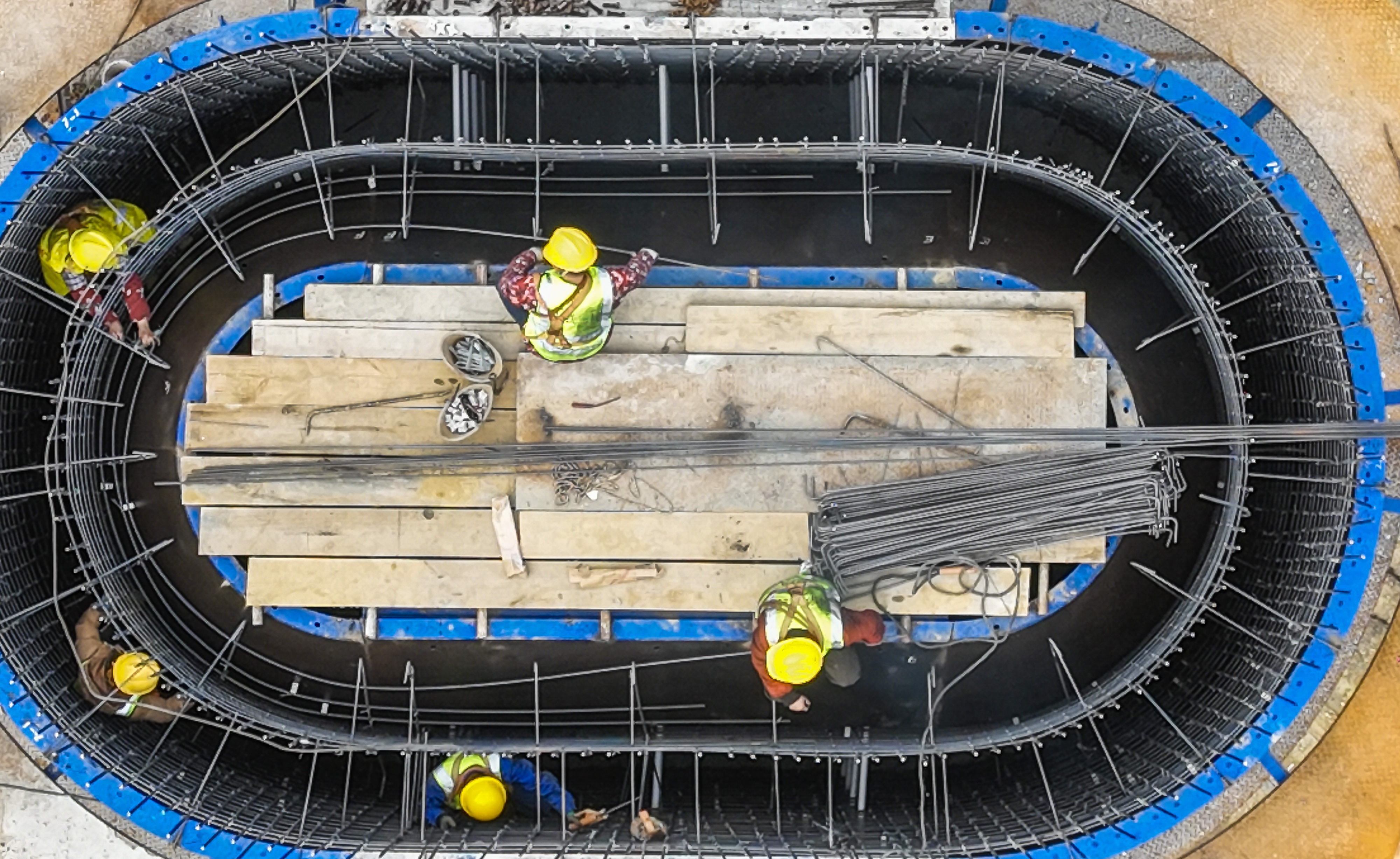 The columns for the bridge’s No. 6 Pier and No. 7 Pier have now been completed, and construction of the 128-meter-long continuous beam is about to begin.