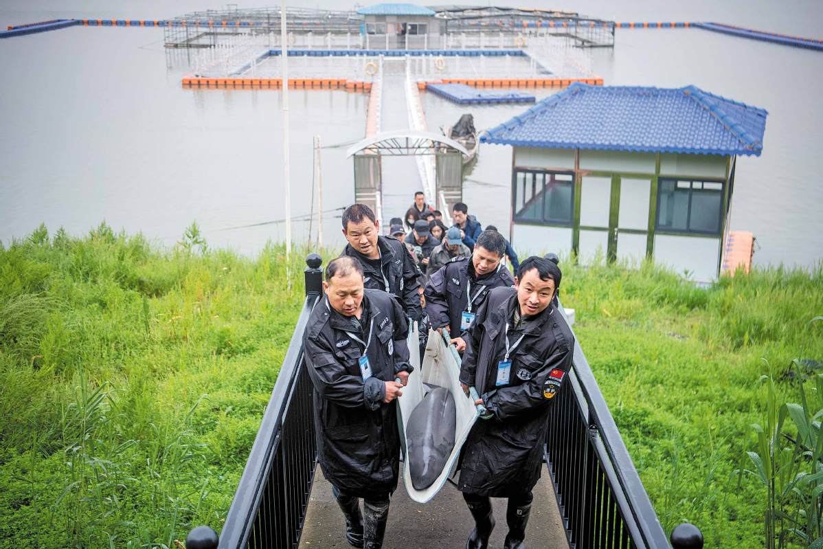 A Yangtze finless porpoise is on its way to be released into the wild in Hubei province on April 25. XIAO YIJIU/WU ZHIZUN/XINHUA
