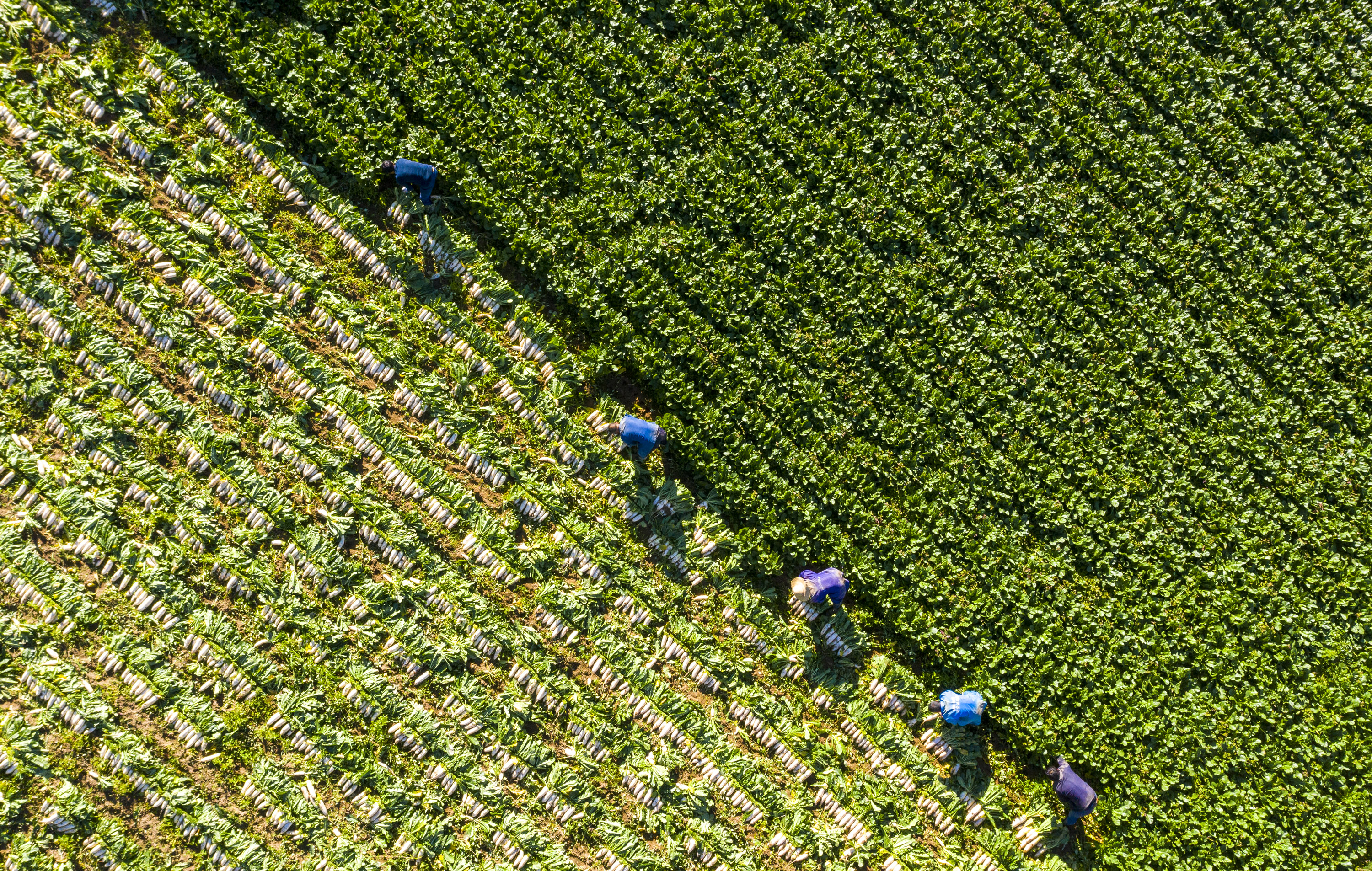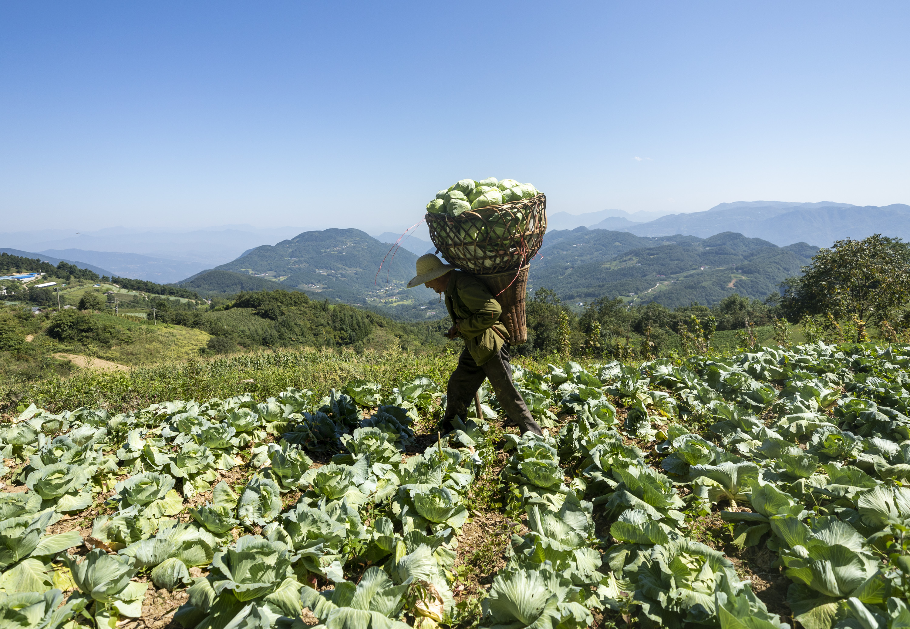 Farmers are harvesting vegetables in Yuntaihuang Village, Zigui County, Yichang City. In summer, villagers take advantage of their mountain climate to grow 3,500 mu (233 hectares) of cool-weather crops such as Chinese cabbage, green cabbage and radish, which are eagerly snapped up by low-altitude urban markets. The village can earn an annual income of 25 million yuan (US$3.4 million).
