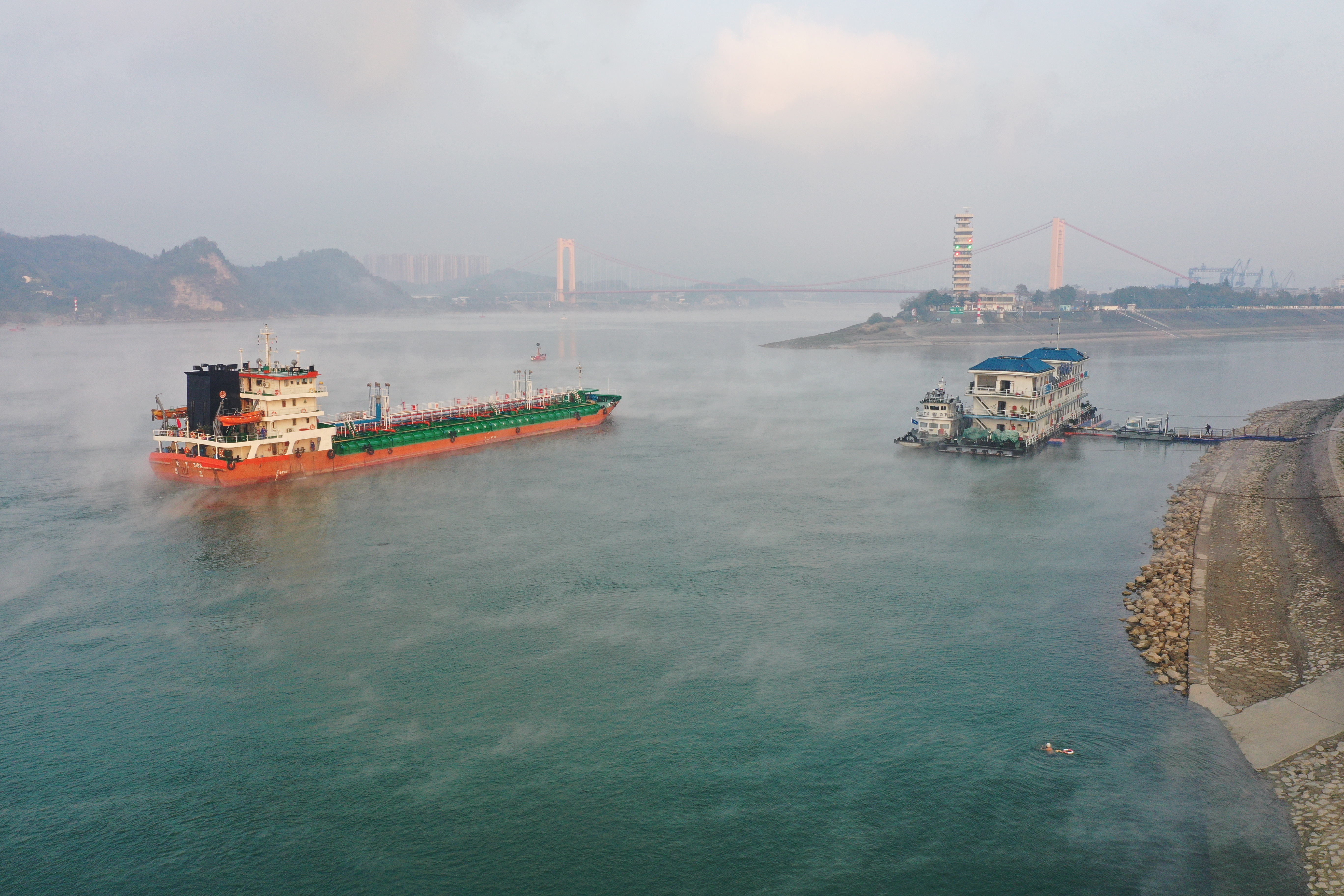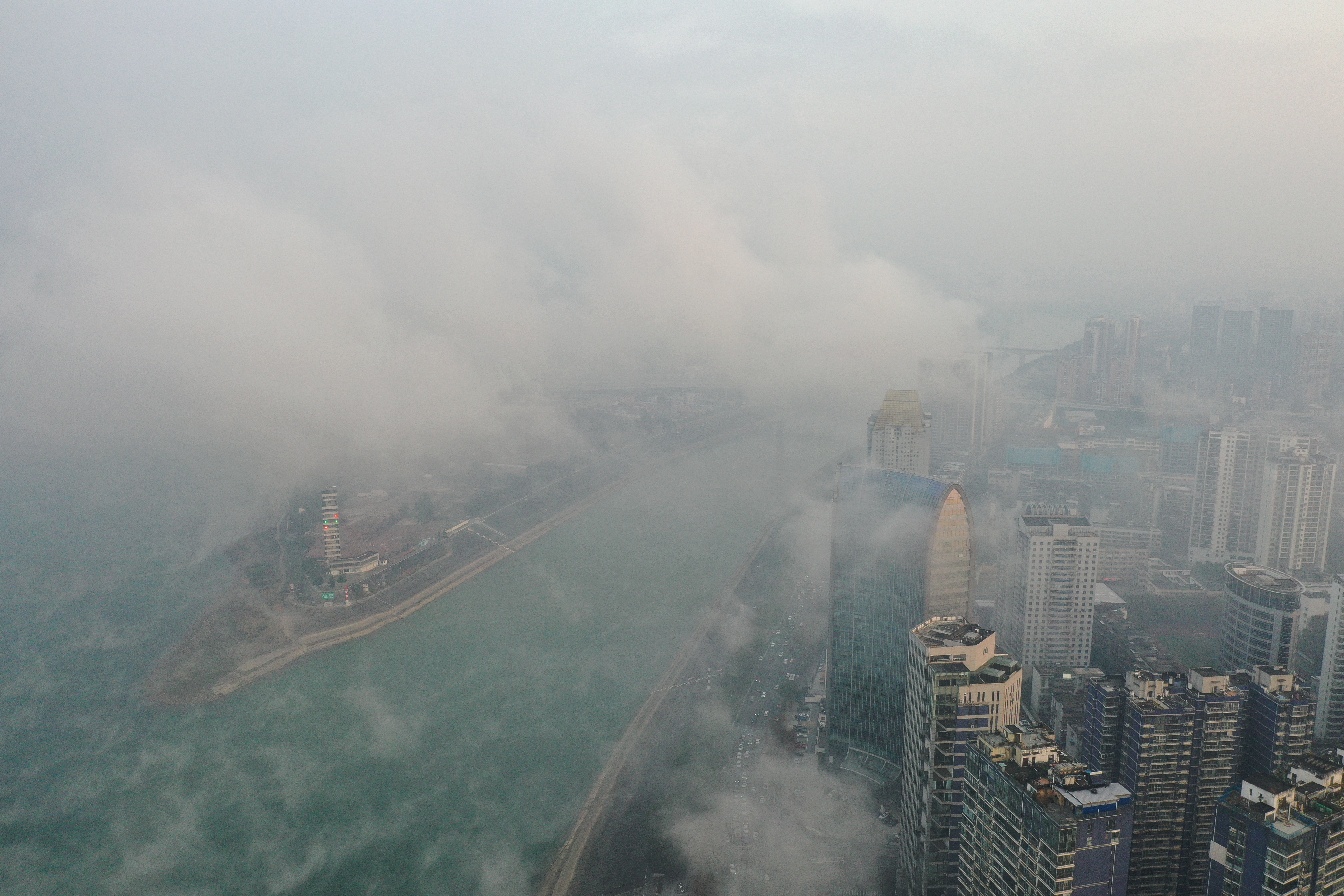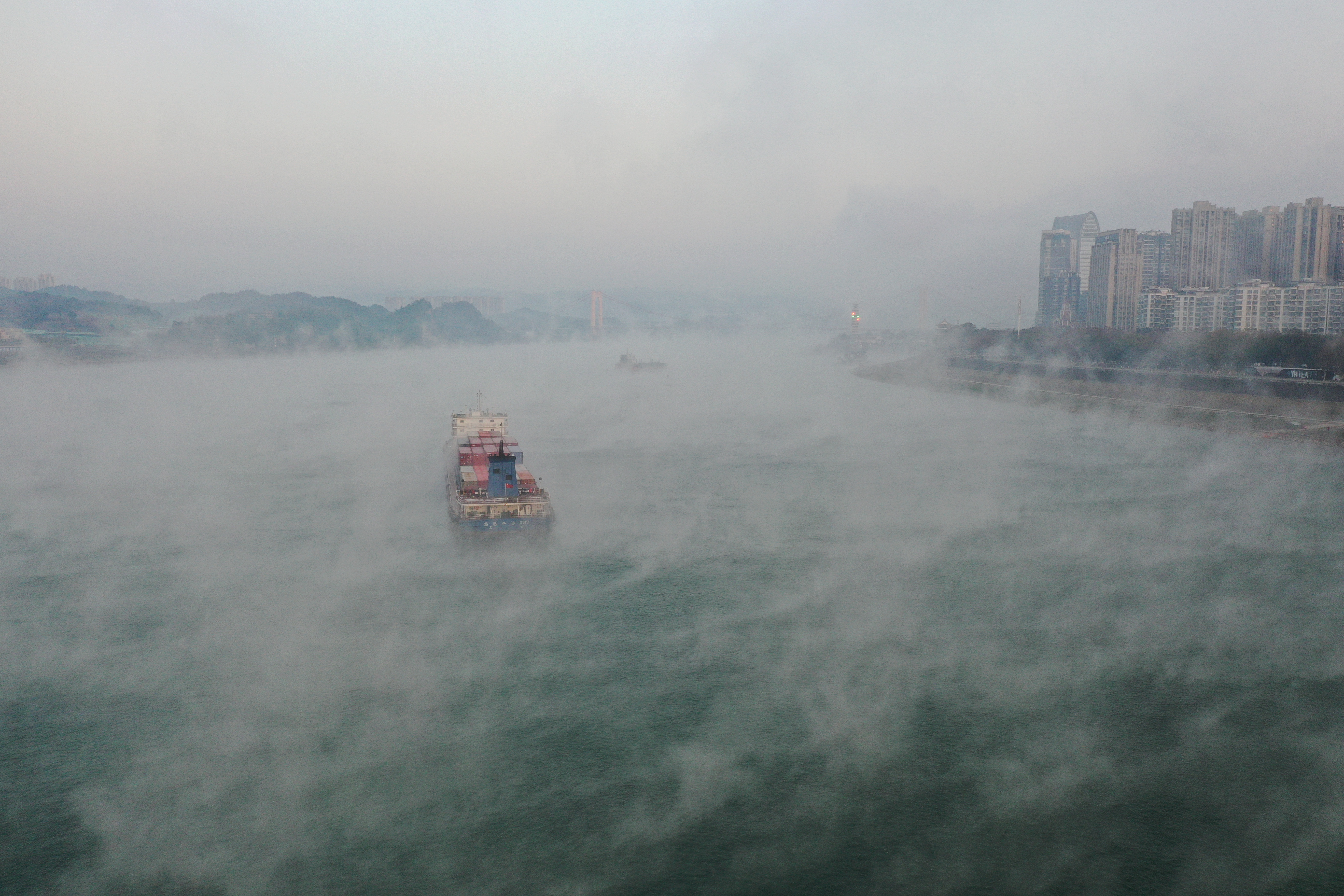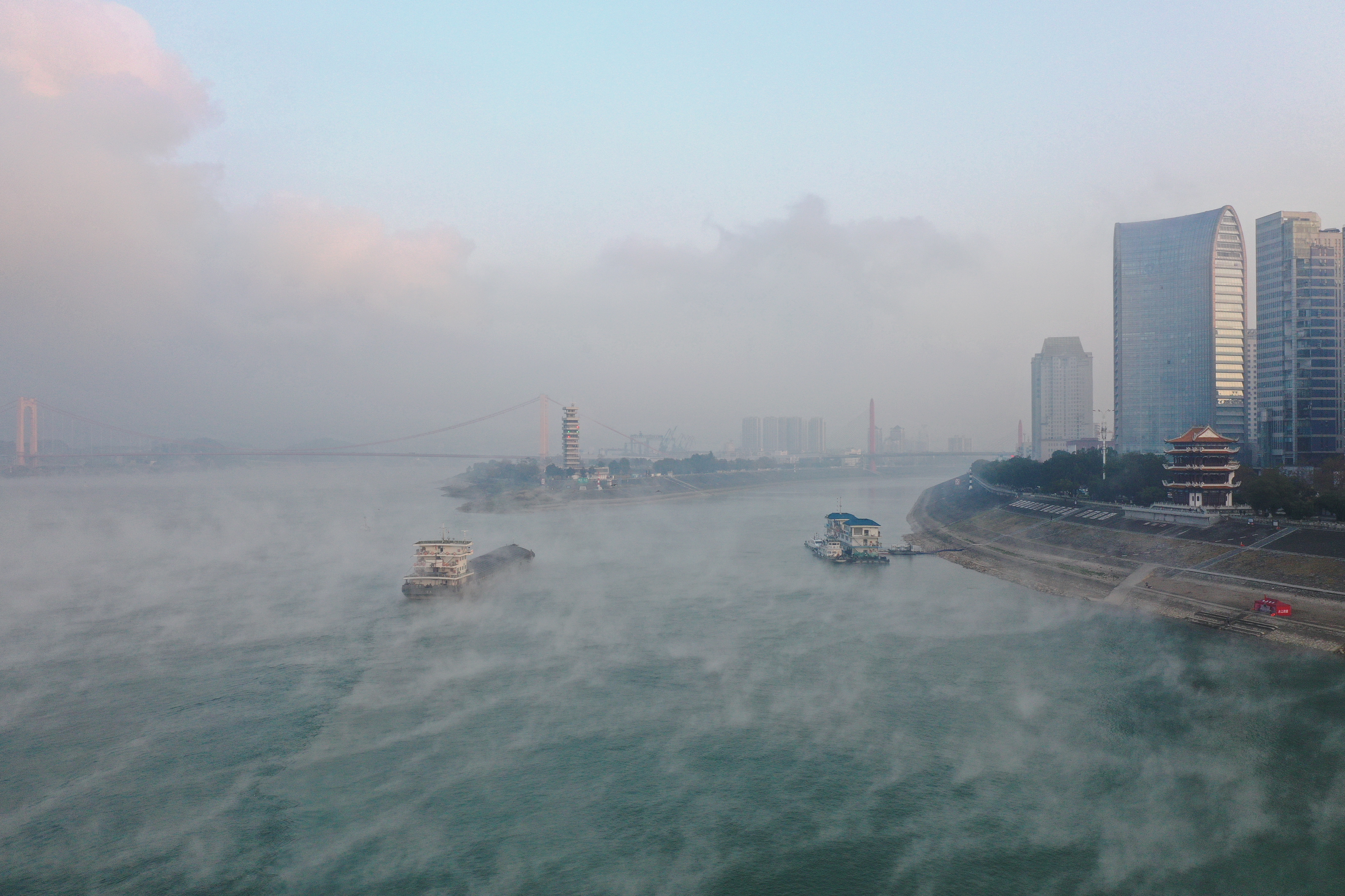In the early morning of December 20, as temperatures dipped below 0 degrees Celsius, a layer of mist cloaked the Yangtze River just before dawn.