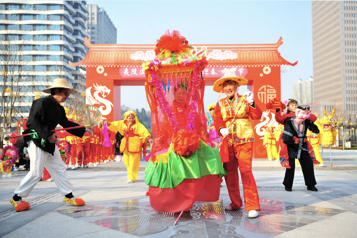 Themed "Dragons Soar in the Prosperous Age," the event showcased traditional performances including dragon and lion dances, lotus-picking boats, and shell dances.