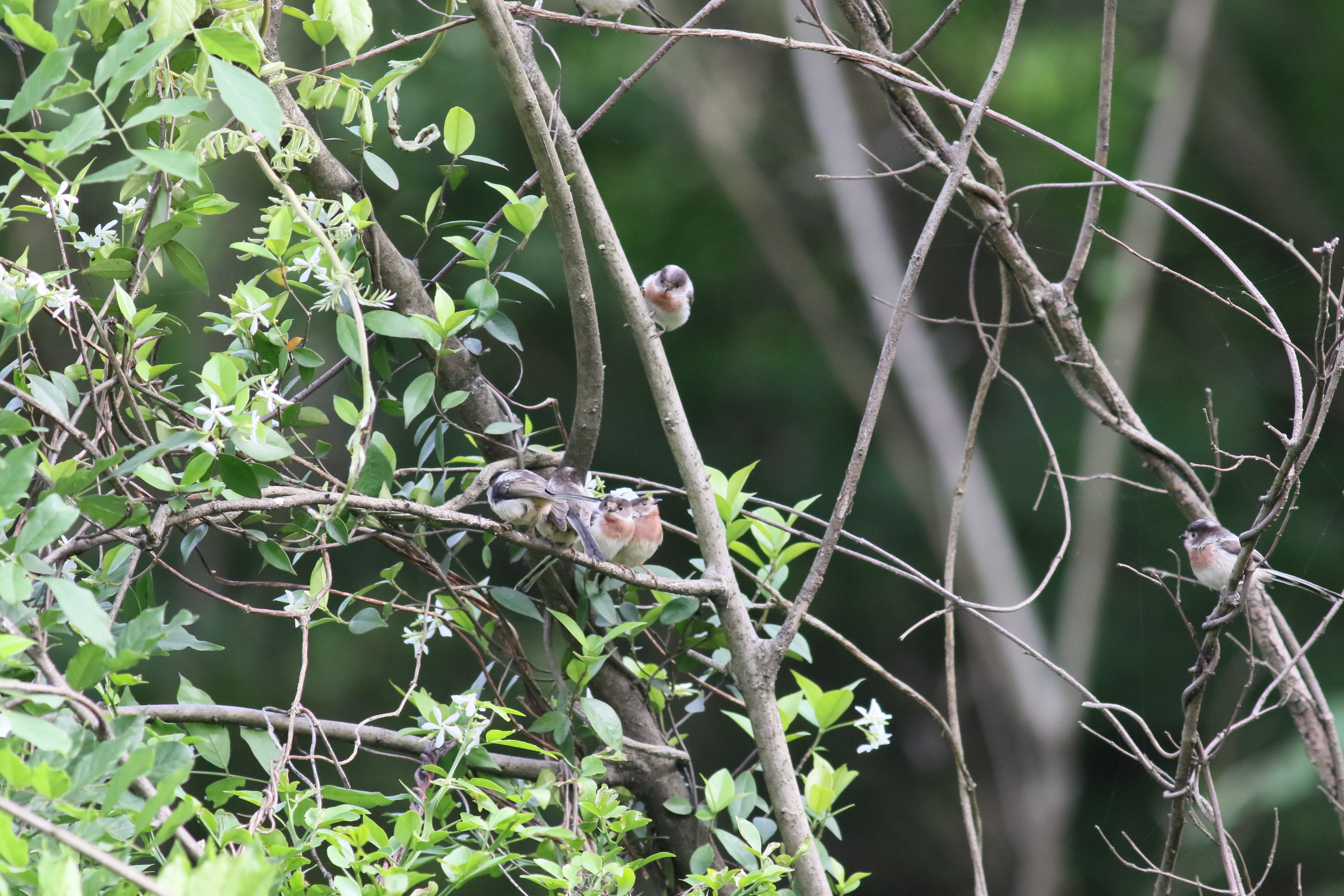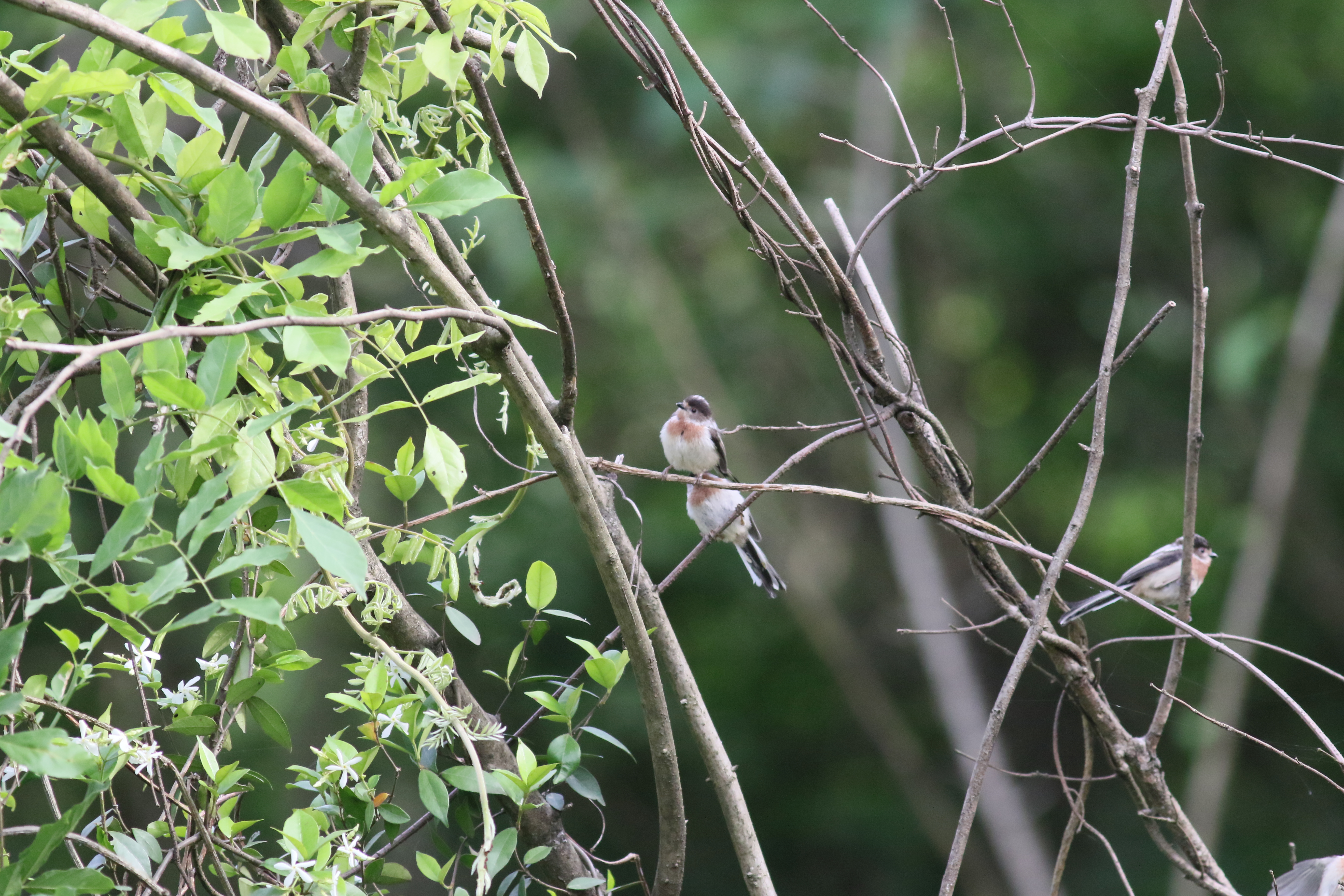 Five long-tailed tits have been observed for the first time in Yichang’s Houhe National Nature Reserve. The five young birds had grape-brown coloring on their heads and necks, a gray or black back, black wings with white edges, and long tails. Some of them had silver-gray spots on their throats.