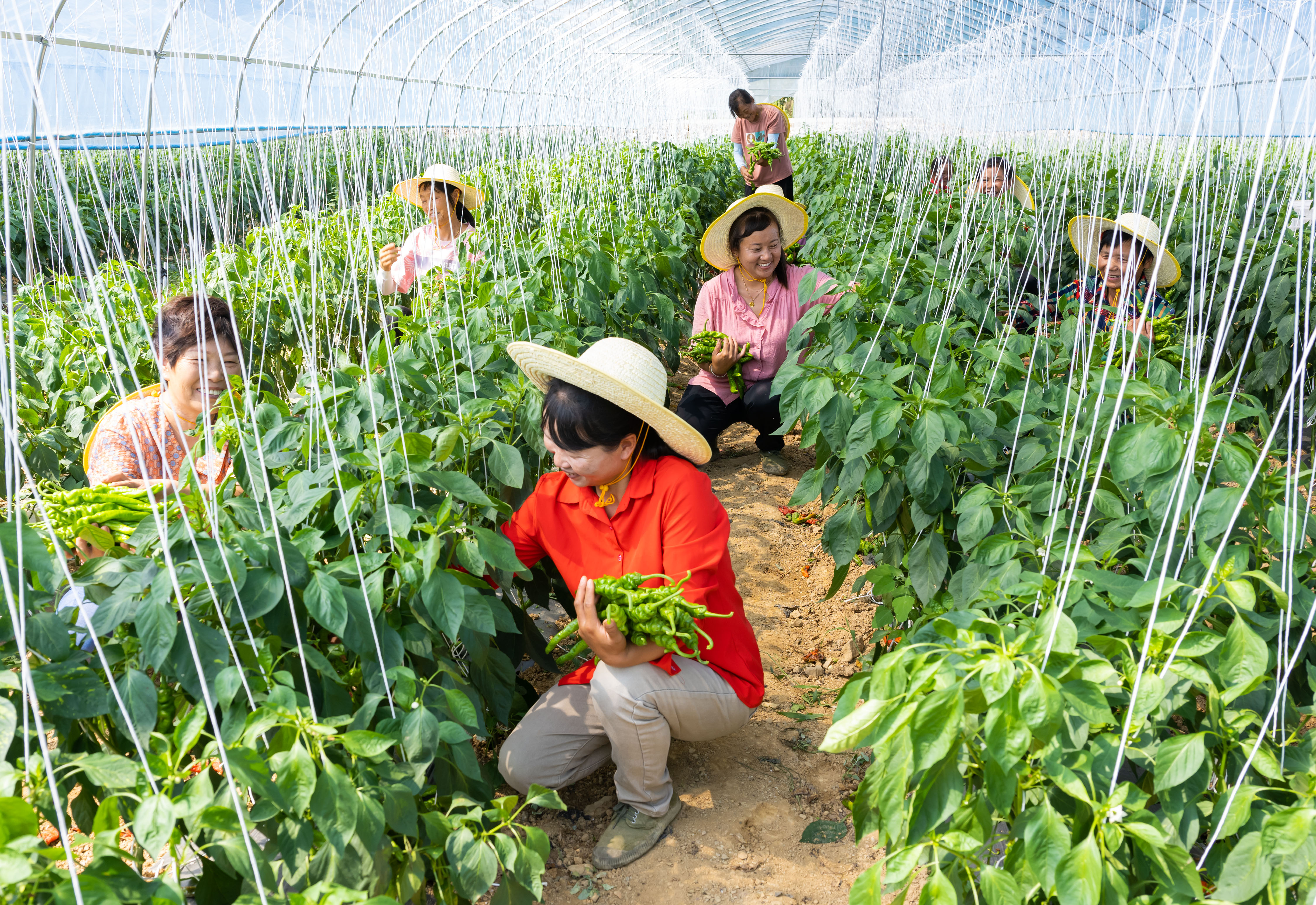 On August 28, 2024, Zigui farmers are picking green peppers.