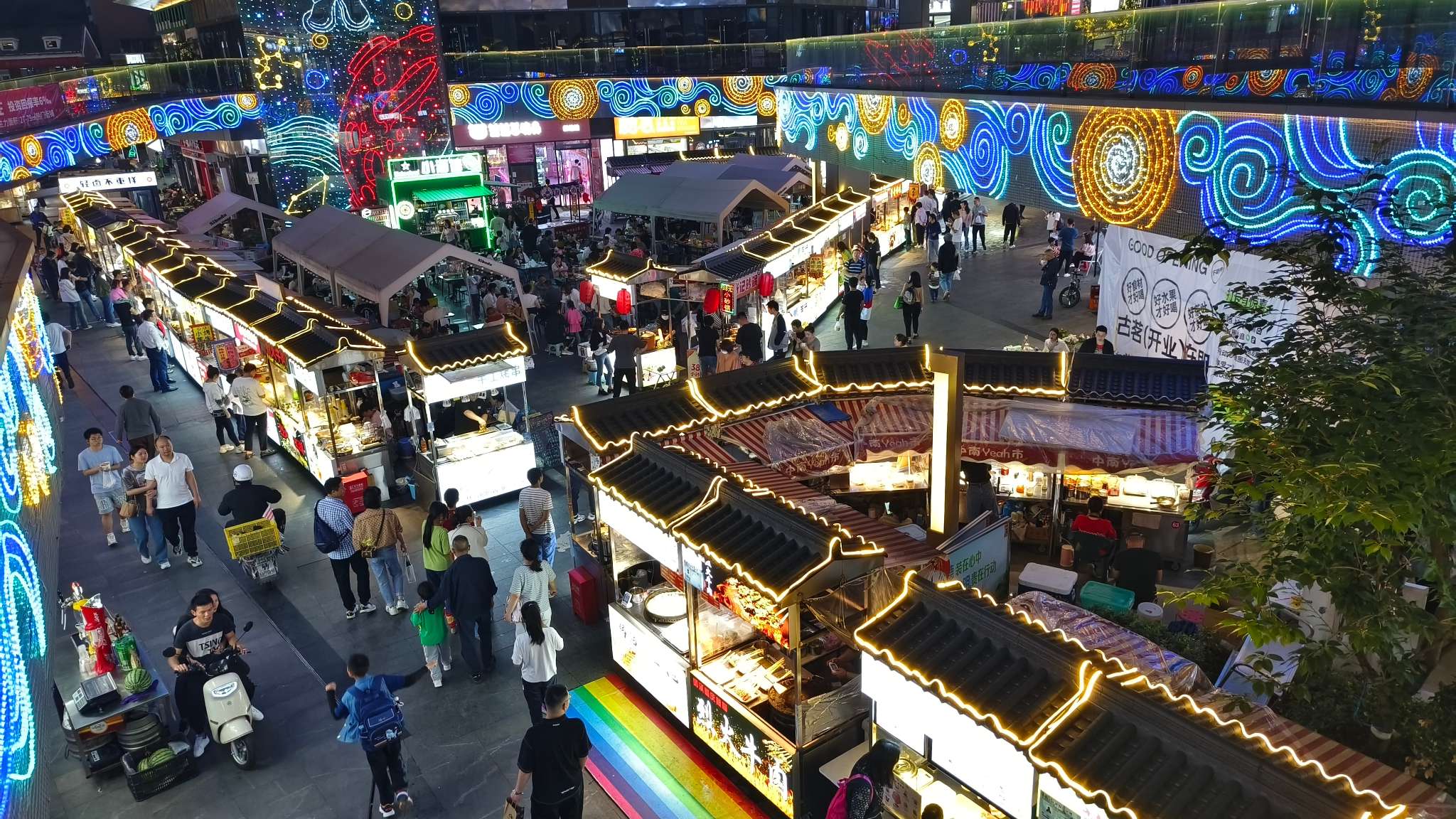 The night market stalls near Xingfa Plaza offer snacks, toys and creative products.