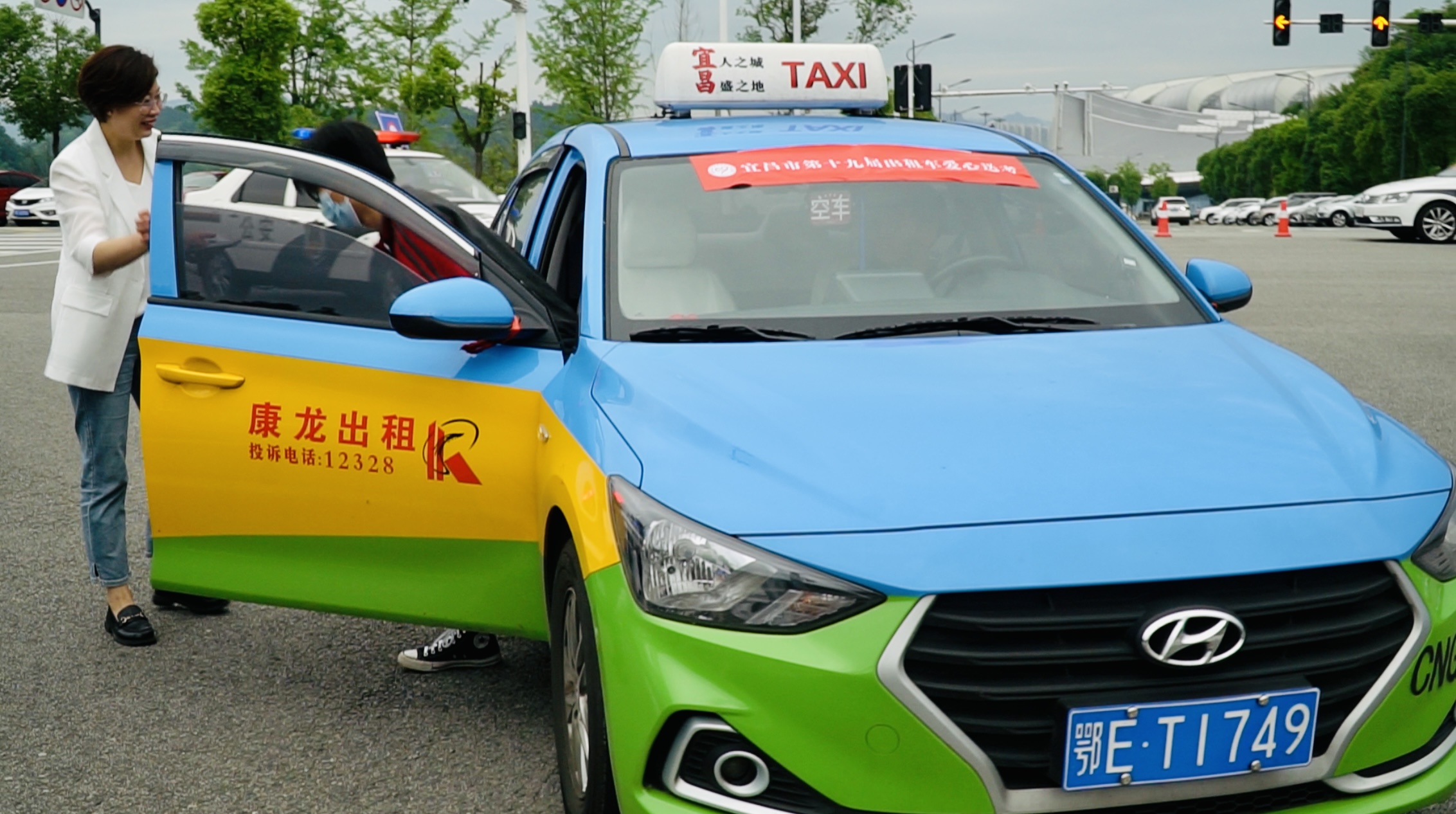 A taxi takes an examinee to the exam site.In addition to providing medical care, traffic control, and transportation services, the city management committee has launched an "assistance for gaokao" campaign to provide free parking spaces near the exam sites.