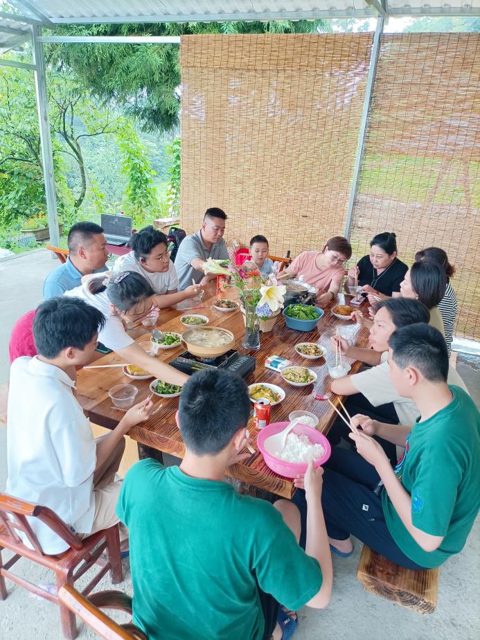 Changyang Tujia bacon hot pot is the base's specialty. With its long-time-stewed white soup base still bubbling, its taste and unique aroma of bacon is perfect after a long day outdoors. Delicious!