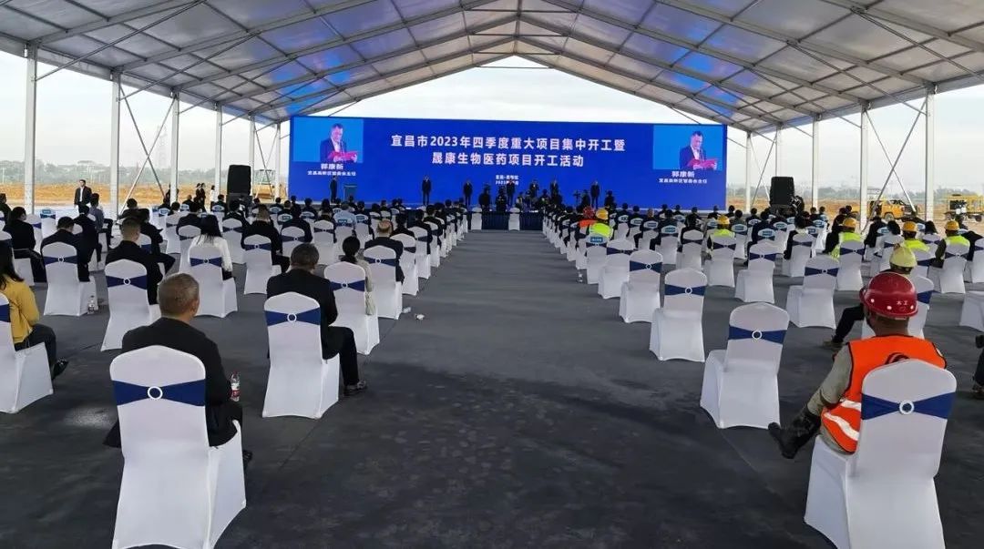 The ceremony was held at the Shengkang biomedical project construction site inside Baiyang Industrial Park in the Yichang High-tech Zone.