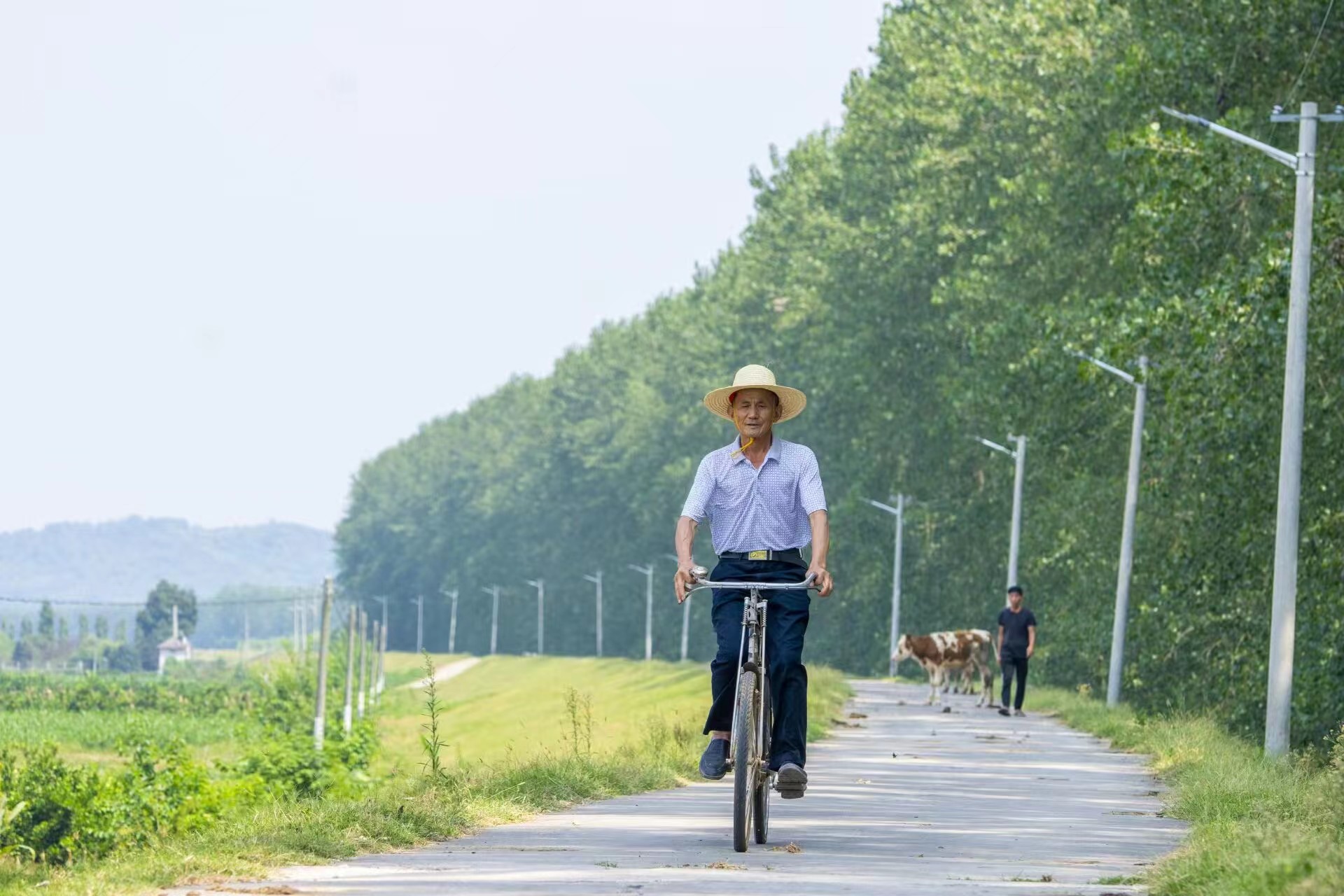 Xue cycles down the riverbank for an inspectionPhoto by Fu Beibei