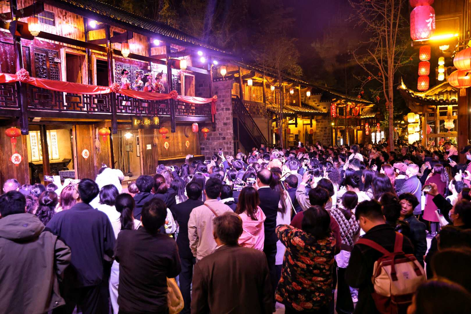 Visitors enjoy a night performance at the Chexi Folk Custom Tour Site. Photo by Wu Yanling.