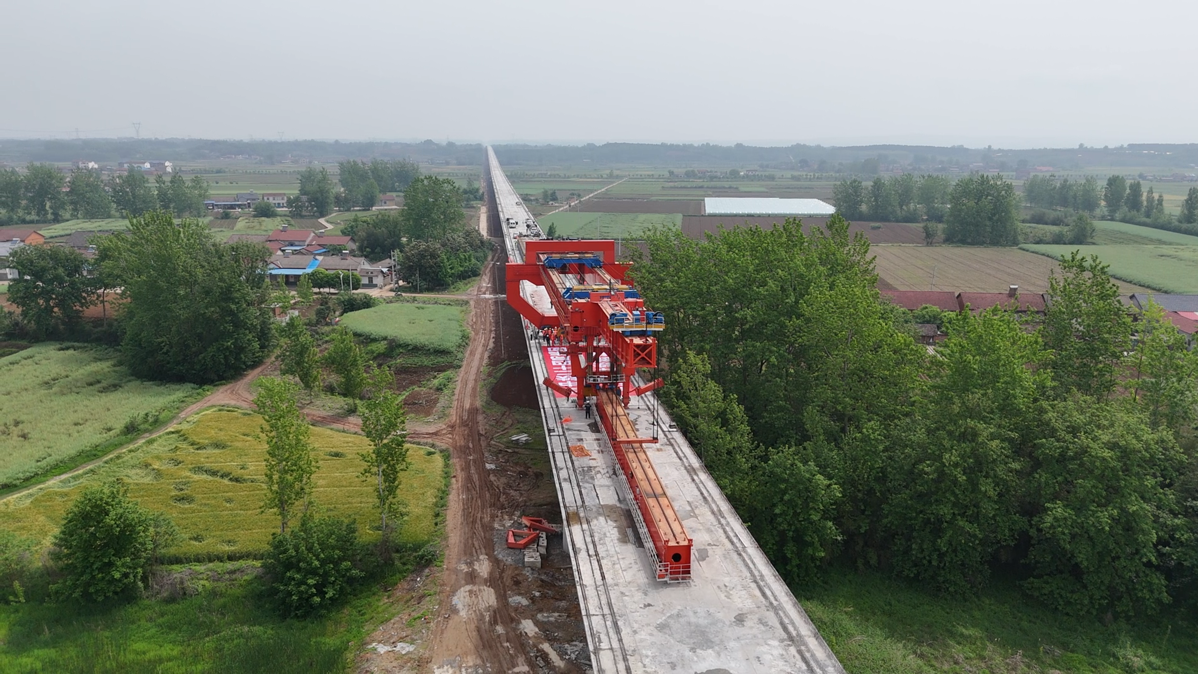 At 10:58 am, the last 900-tonne box girder was lifted into place at a construction site in Yuxi Town, Dangyang, along the Shanghai-Chongqing-Chengdu High-Speed Railway. This marked the completion of the girder installation work for the railway’s Yichang section.