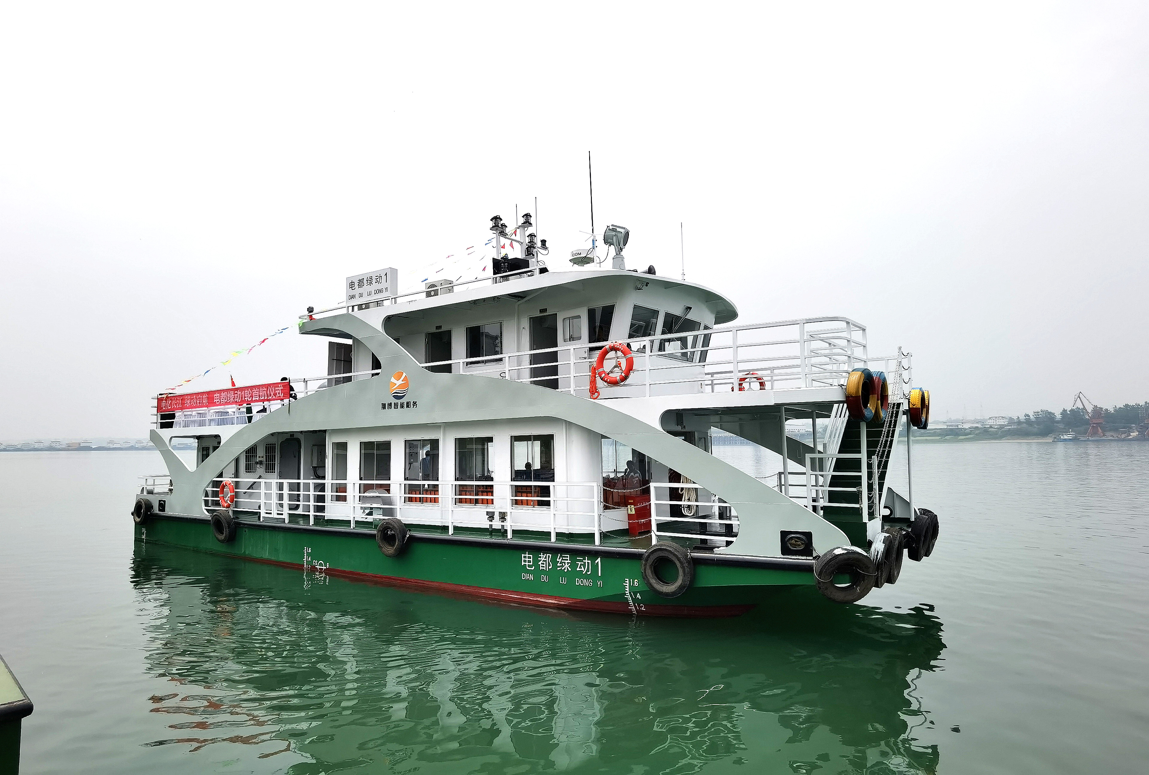 The first pure electric catamaran harbor craft Dian Du Lu Dong 1 embarked on its maiden voyage from the Yichang section of the Yangtze River on Monday. This was the first time a fully electric harbor craft has been used on the Yangtze River.