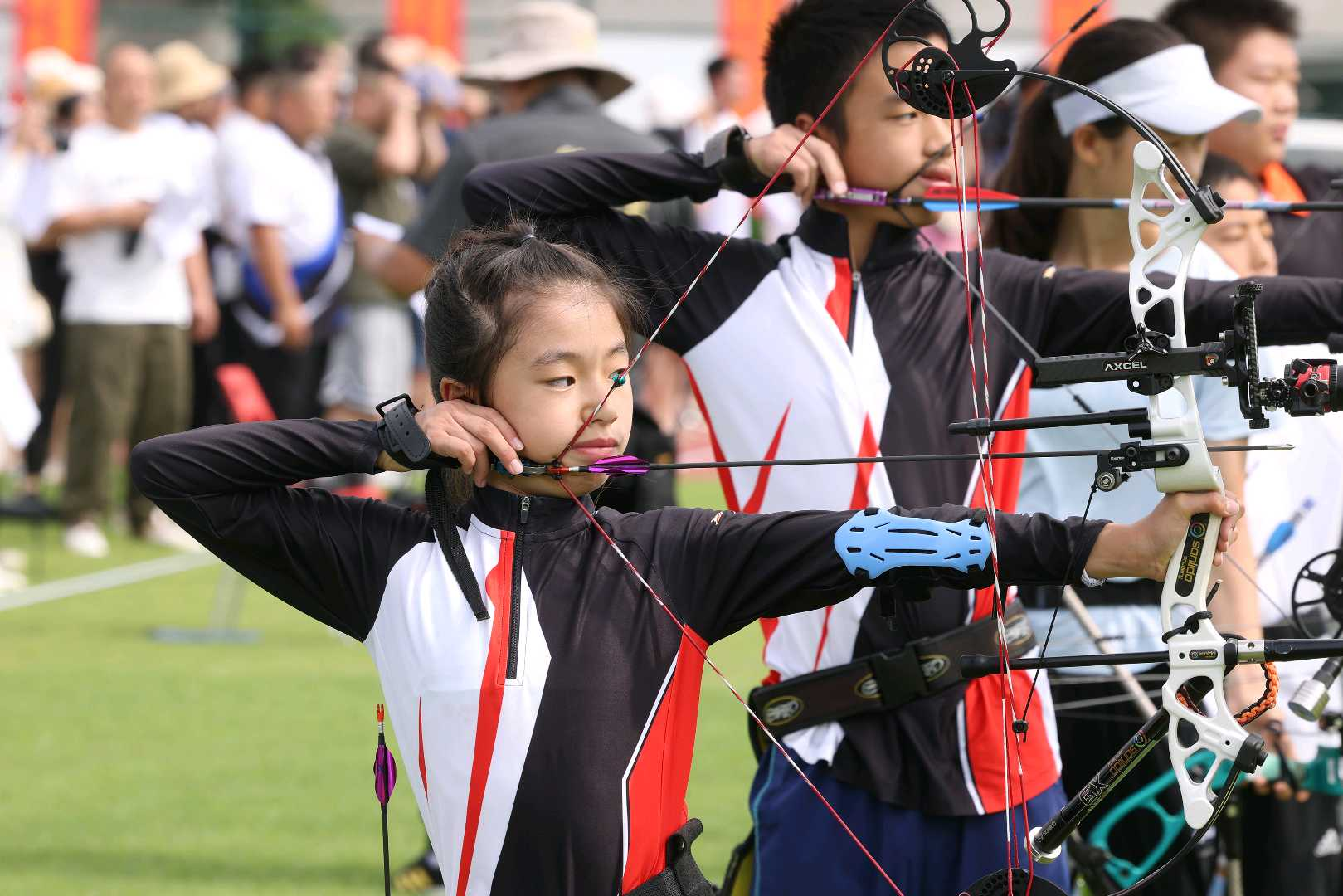 On June 29, 2024, athletes from 15 provinces join the Archery Club Archery China 2024 Season (Yichang) Outdoor Archery Invitational Tournament at the Yichang Olympic Sports Center.