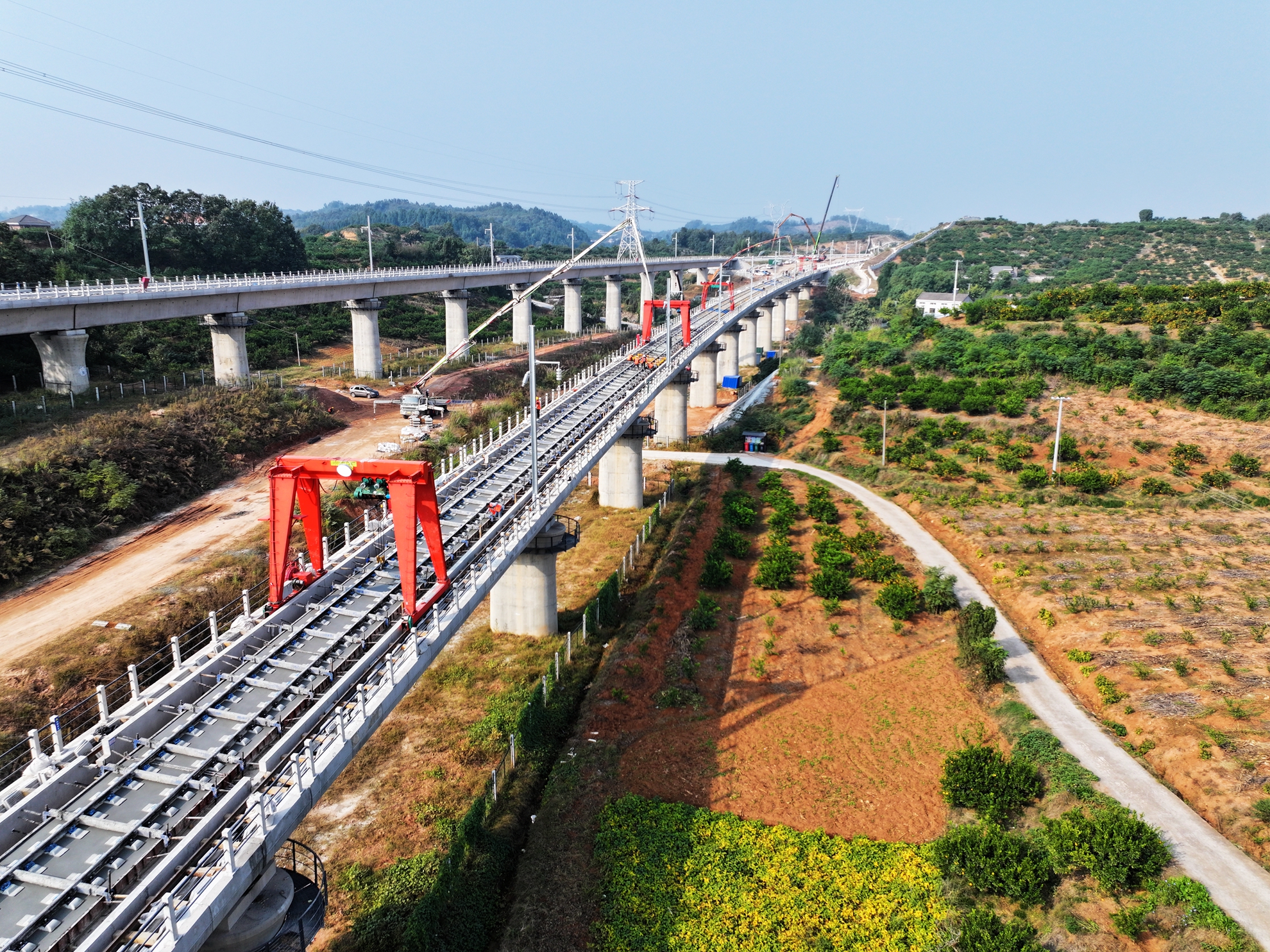 The ballastless track from Yichang North Railway Station to Yangjiabang in Yichang’s Yiling District has been completed, paving the way for the early start of the Wuhan-Yichang section of the Shanghai-Chongqing-Chengdu High-Speed Railway, set for late 2025.