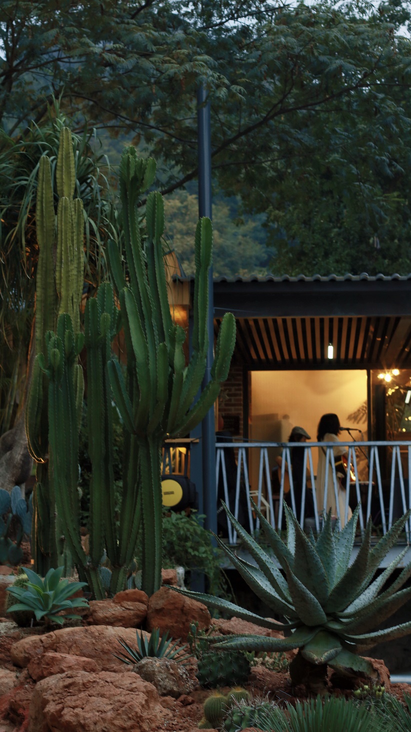 Imagine sipping a cup of coffee under blue skies and white clouds, with lush greenery providing shade, all set against the Gezhouba Dam and Yichang's urban skyline. Alternatively, picture enjoying a cup surrounded by tropical cacti and the sounds of chirping birds in a serene valley.