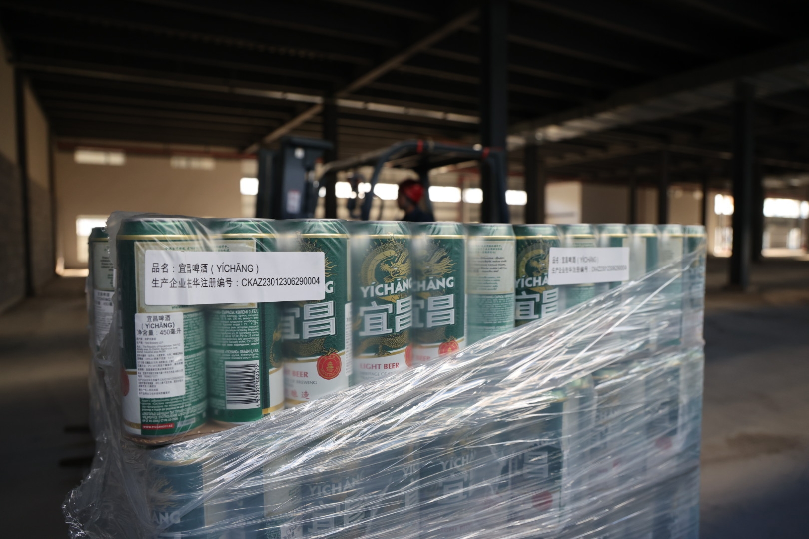 The first shipment of 40,000 cans of "Yichang Beer" arrived in Yichang on November 29 after a seven-day cold-chain transport from Almaty, Kazakhstan.
