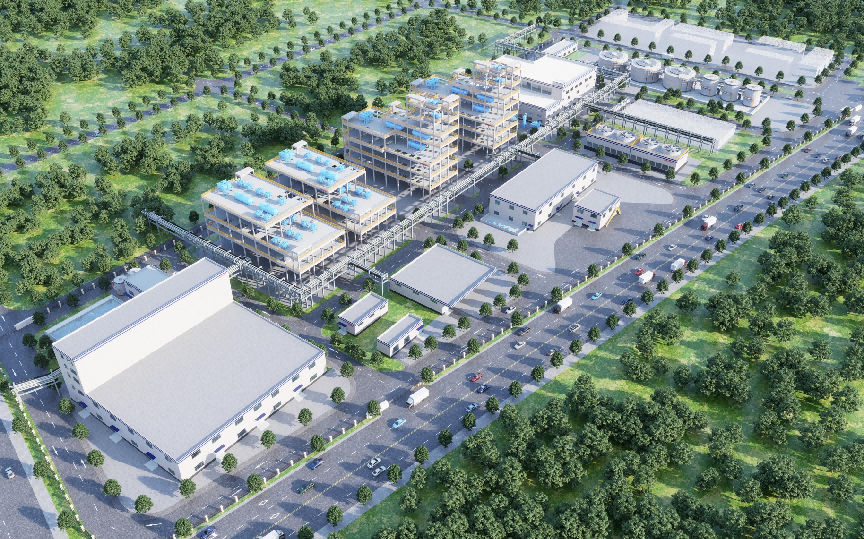 Conceptual rendering of the first phase of the chemical industry park project.Fluorosilicic acid is the most important raw material in the newly constructed park. It is produced during the concentration and reaction of phosphoric acid.