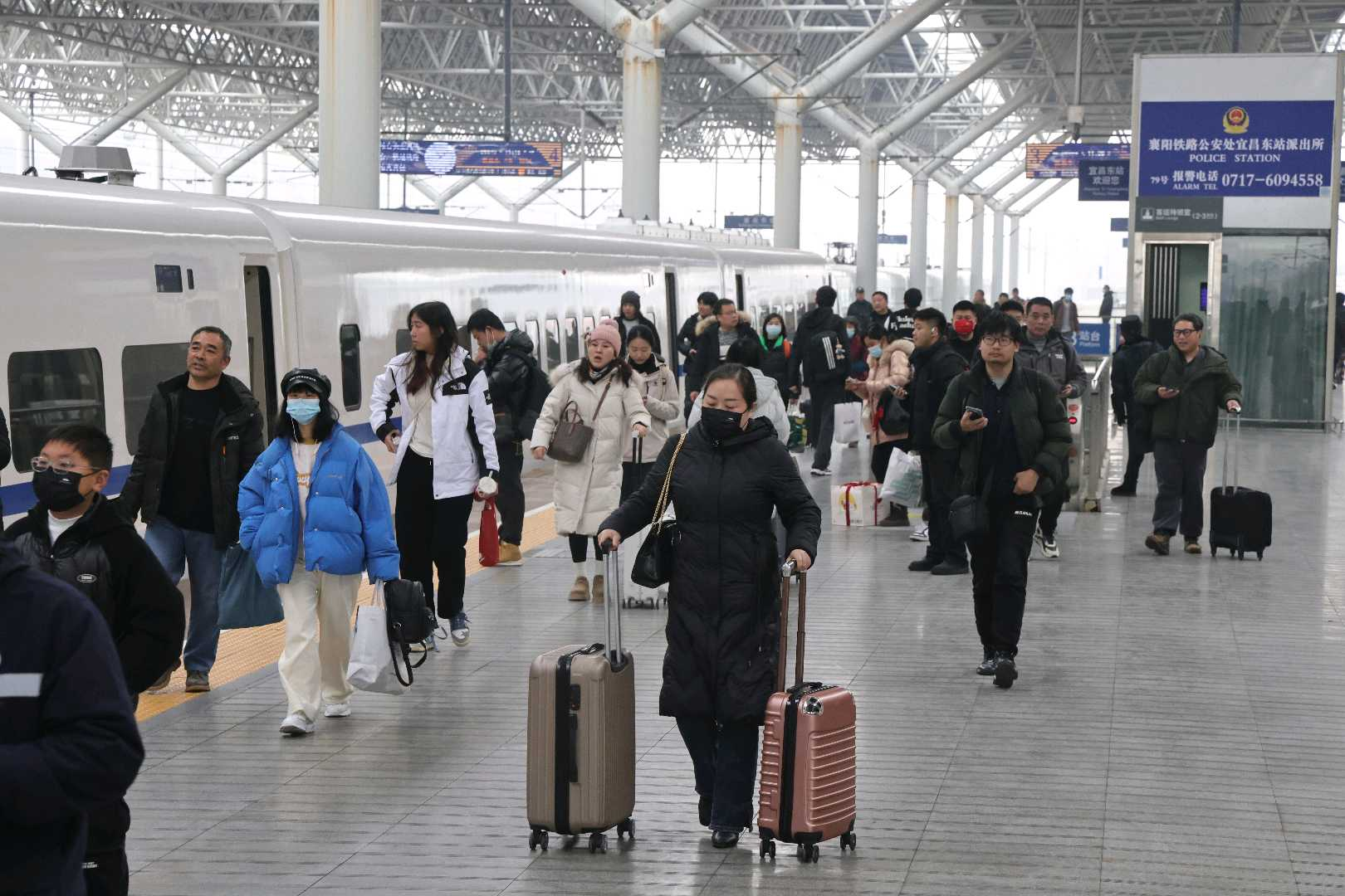 Returning passengers in Yichang East Railway Station. (Photo by Wu Yanling)This year's Spring Festival features an extended eight-day holiday. Yang Xiaoyan, the head of passenger services at the Yichang section, stated that peak travel days will be January 27, February 4, and February 13. Before the festival, Yichang East Station is expected to experience heavy traffic heading toward Sichuan, Chongqing, Wuhan, and Enshi. After the festival, travel patterns will shift to cities like Beijing, Shanghai, Guangzhou, and Wuhan.