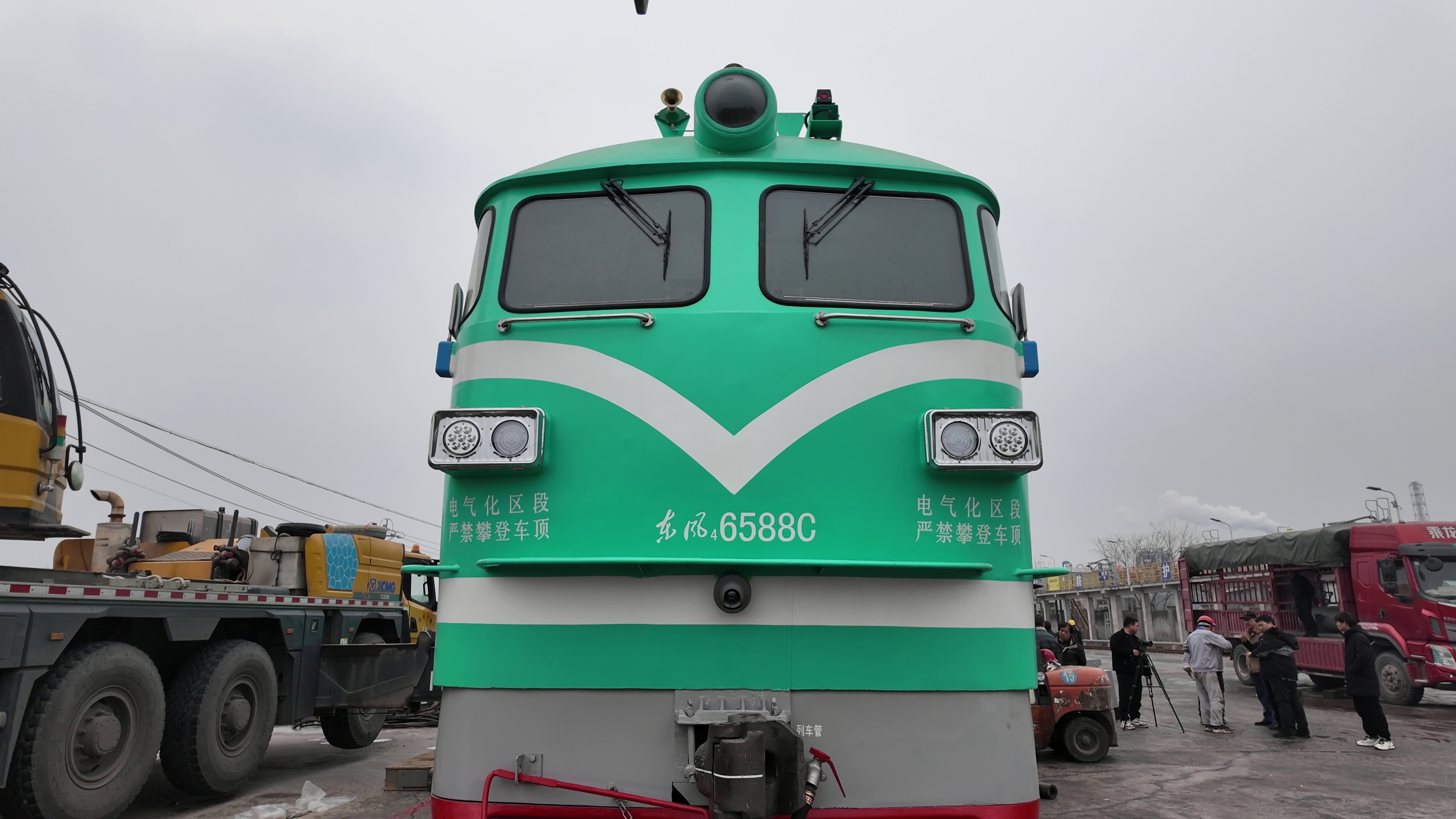 The first new-energy traction locomotive in Hubei province that has undergone an "oil-to-electric" upgrade, is being assembled and tested in Yidu, Yichang.