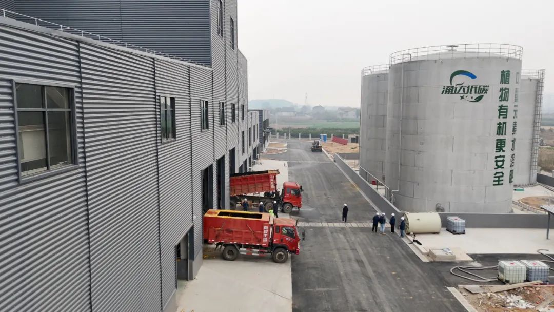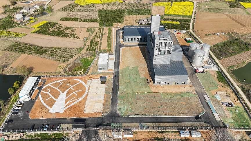 An aerial view of Yichang Yongda Low Carbon Development Biotechnology Co., Ltd.At the Yichang Yongda Low Carbon Development Biotechnology Co., Ltd. workshop, workers mixed pomace with organic waste such as straw powder and peanut shells, transforming it into organic fertilizers.