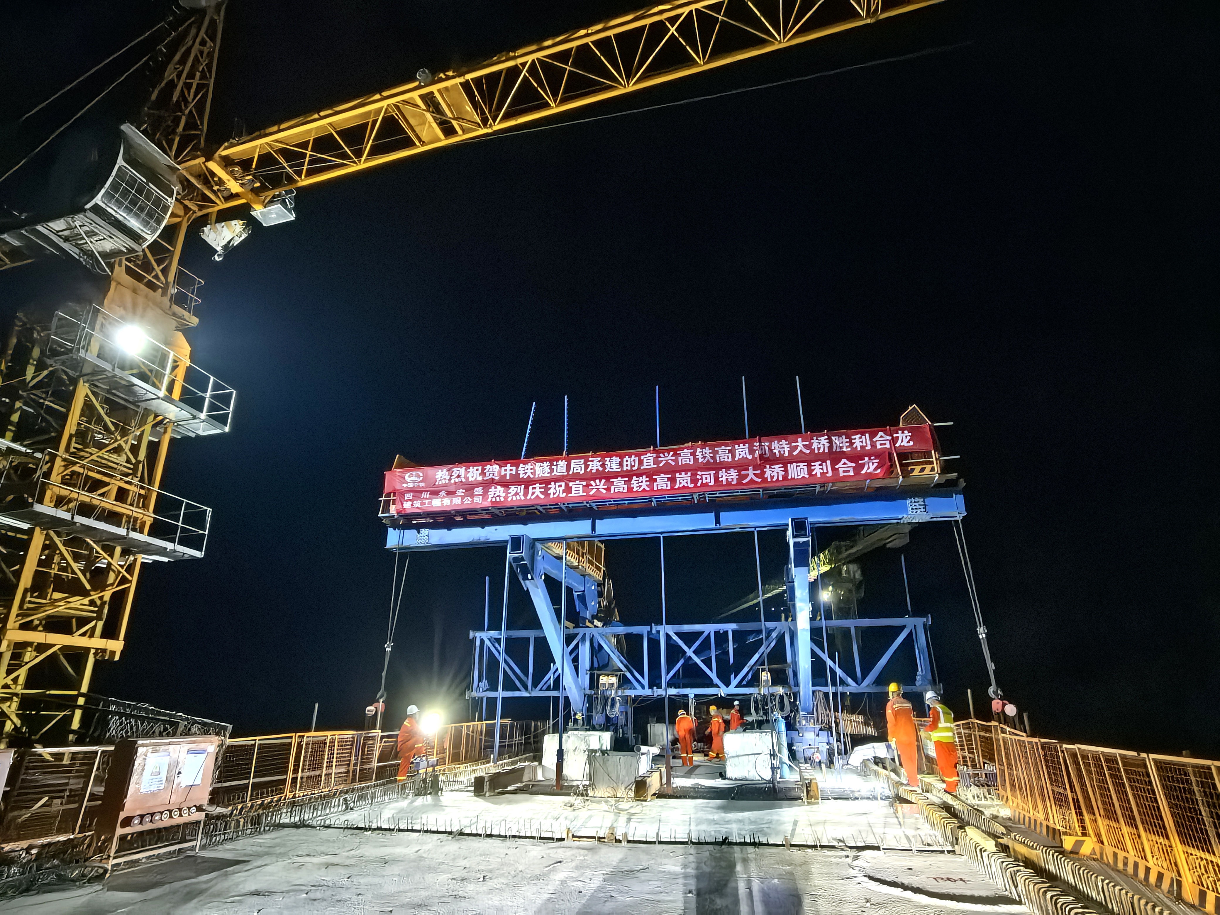 Workers pour the final layer of concrete on the Gaolanhe Bridge. Photo by Li Bin.