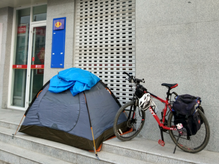 Sleeping in the outdoors in Tai'an, Shandong during cycling.