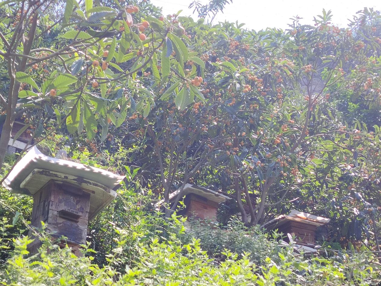 The beehives that Chen Dacheng has set up in his loquat orchard."These bees help pollinate the fruit trees and improve their resistance to pests and diseases,” he said. “Now, both the yield and quality of the fruit are better.”