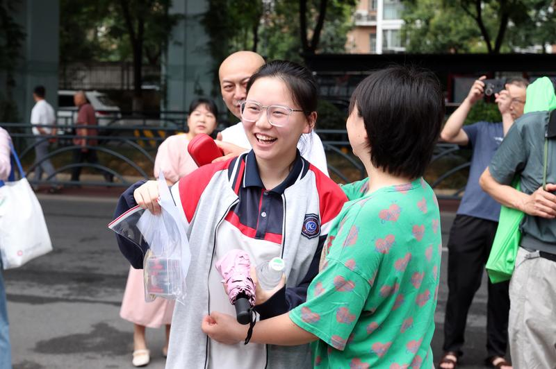 A mother encourages her daughter before starting the gaokao at Yichang Science and Technology High School. Photo by Yan Xiaodong.