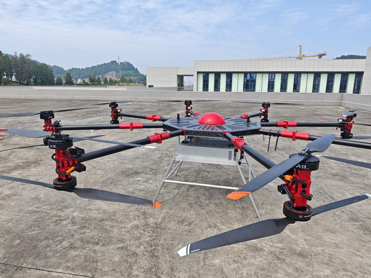 The XD-420 drone. Photo by Han Shuanghui“This drone adopts a unique 8-axis 16-blade rotor layout and introduces a dual-blade structure design, which has brought about a qualitative leap in power efficiency, flight stability, and load-bearing capacity,” said Xiu Yu, technical director of Yi'an Technology.