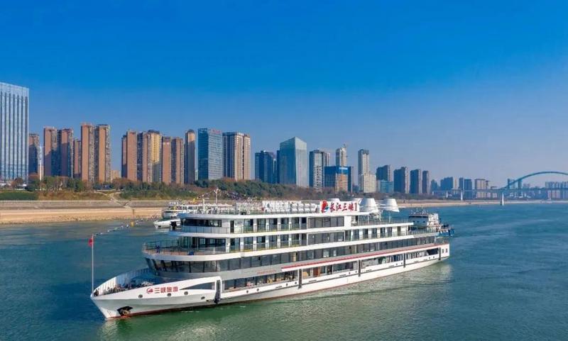 The Changjiang Sanxia 1 cruise ship.The Changjiang Sanxia 1, the world's largest electric cruise ship, features four battery compartments that store energy equivalent to more than 100 electric vehicles. Li Xingheng from the State Grid Yichang Power Supply Company said a high-voltage charging system and a low-voltage supplementary system were developed to efficiently meet the ship's energy needs.