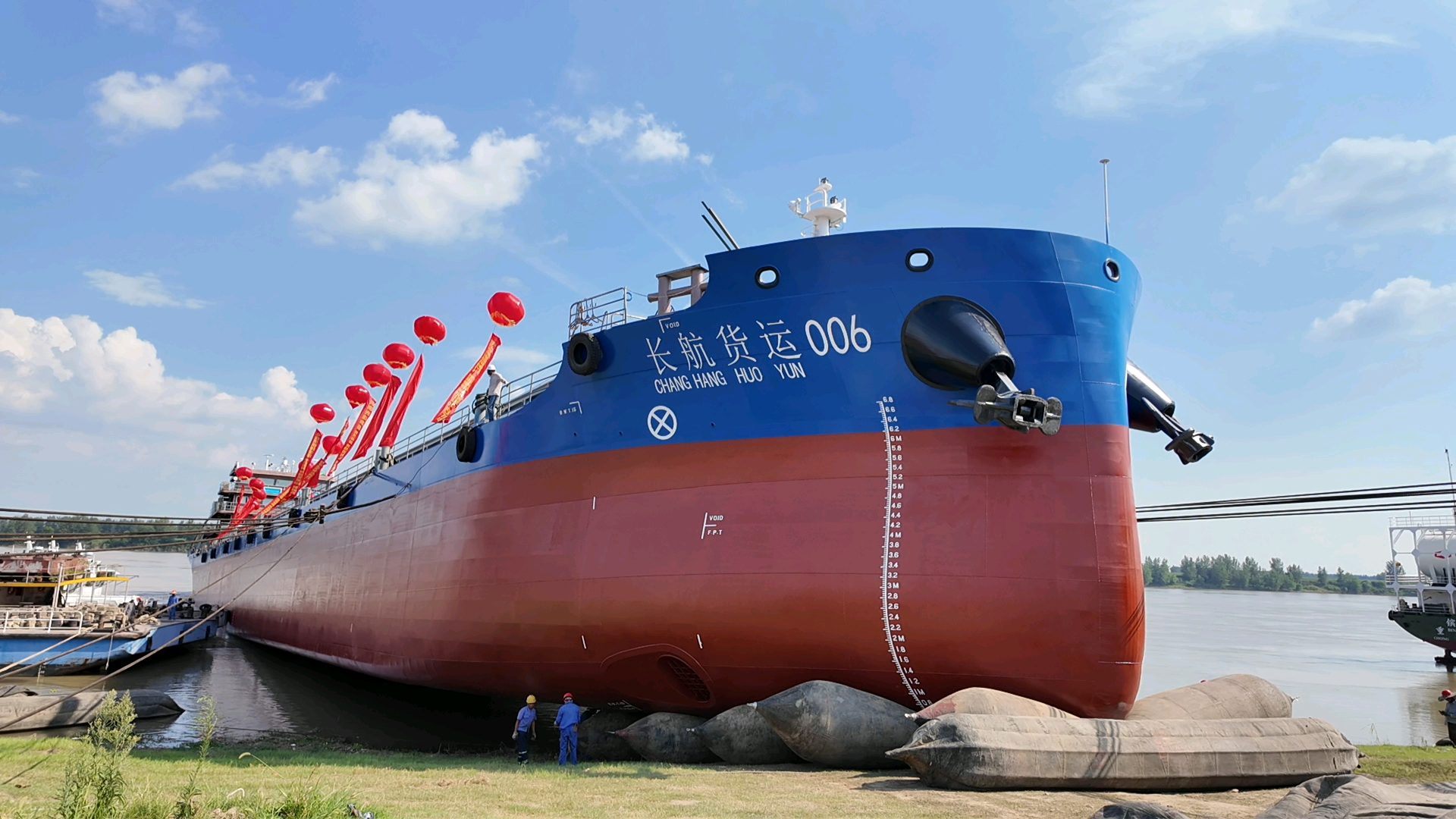The Yangtze River Basin's first pure methanol-powered ship, the Changhang Cargo 006, was launched in Zhijiang on July 28.