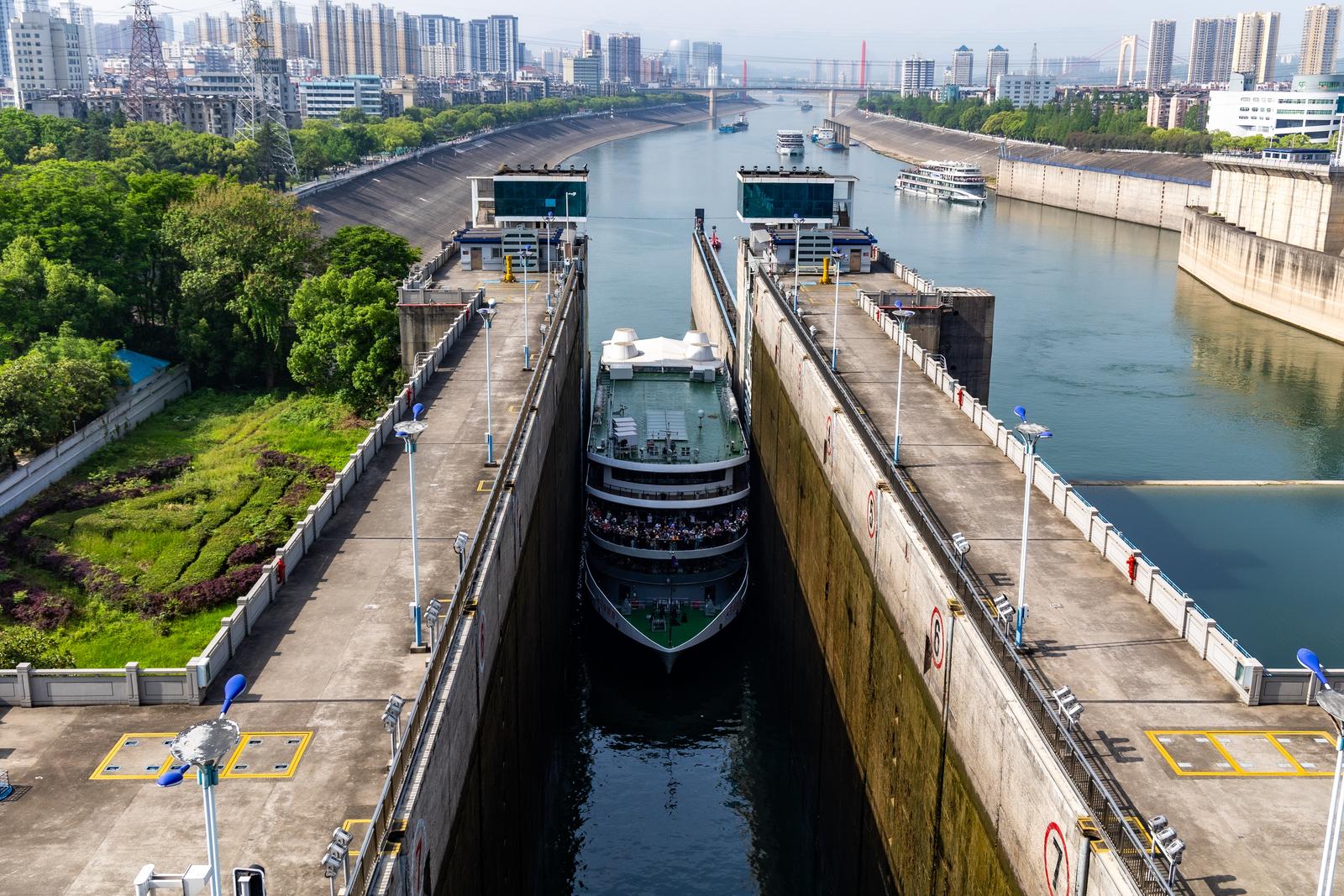 The Gezhouba No. 3 ship lock set a single-day record on August 10, passing 23 passenger vessels carrying a total of 14,145 passengers, according to the Three Gorges Navigation Authority.