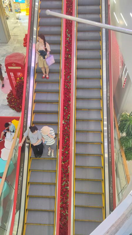 On August 28, Yichang International Trade Mall set up rose decorations in the elevator areas for couples to take photos. Photo by Lin Xiao