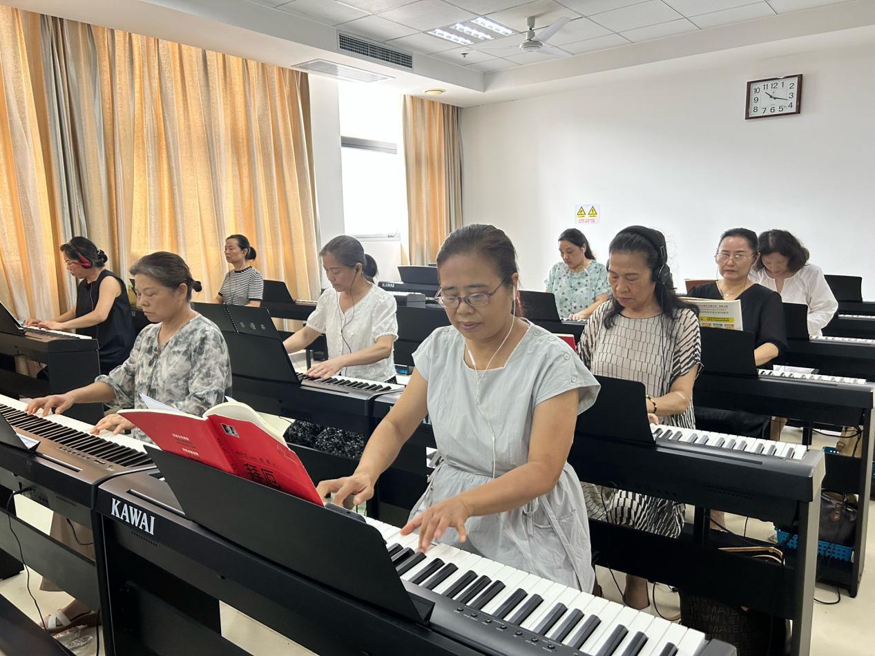 Students learning to play electronic keyboard in a music class.Photography classes are among the most popular. Instructors focus on core skills such as composition and framing. Students often photograph teaching demonstrations and practice techniques after class.