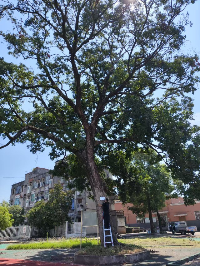 A staff member is attaching a new nameplate to an ancient tree. Photo provided by the Zhijiang Forest Resources Monitoring StationAdditionally, the Zhijiang Forest Resources Monitoring Station has sent technicians to clear weeds, remove insect eggs, and repair boreholes caused by insects around the ancient trees. The bureau has assigned a dedicated caregiver to each tree and conducts regular inspections and patrols. Timely rejuvenation and restoration work is also underway for aging, weakened trees.