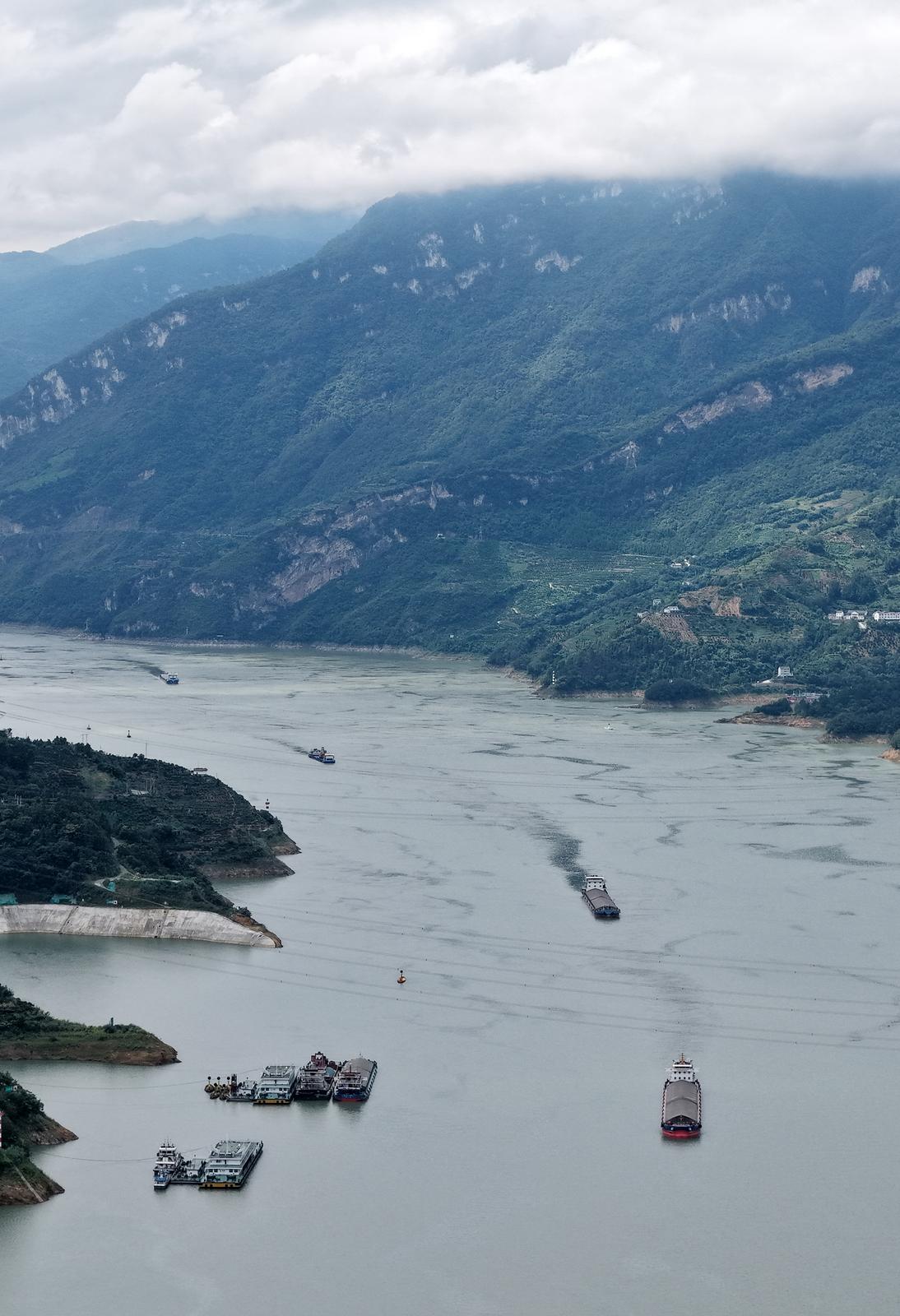 On September 11, ships sail in the waters of Maoping Town, Zigui County, upstream of the Three Gorges Dam.