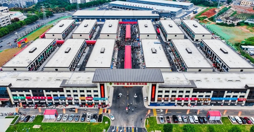 Shoppers seen at the Yidu Commercial Logistics Park.As a modern logistics hub in southwestern Hubei, the park integrates agricultural wholesale markets, cold chain storage, and e-commerce services. Its 10,000-ton smart cold storage facility will help address the region’s shortage of cold chain capacity.