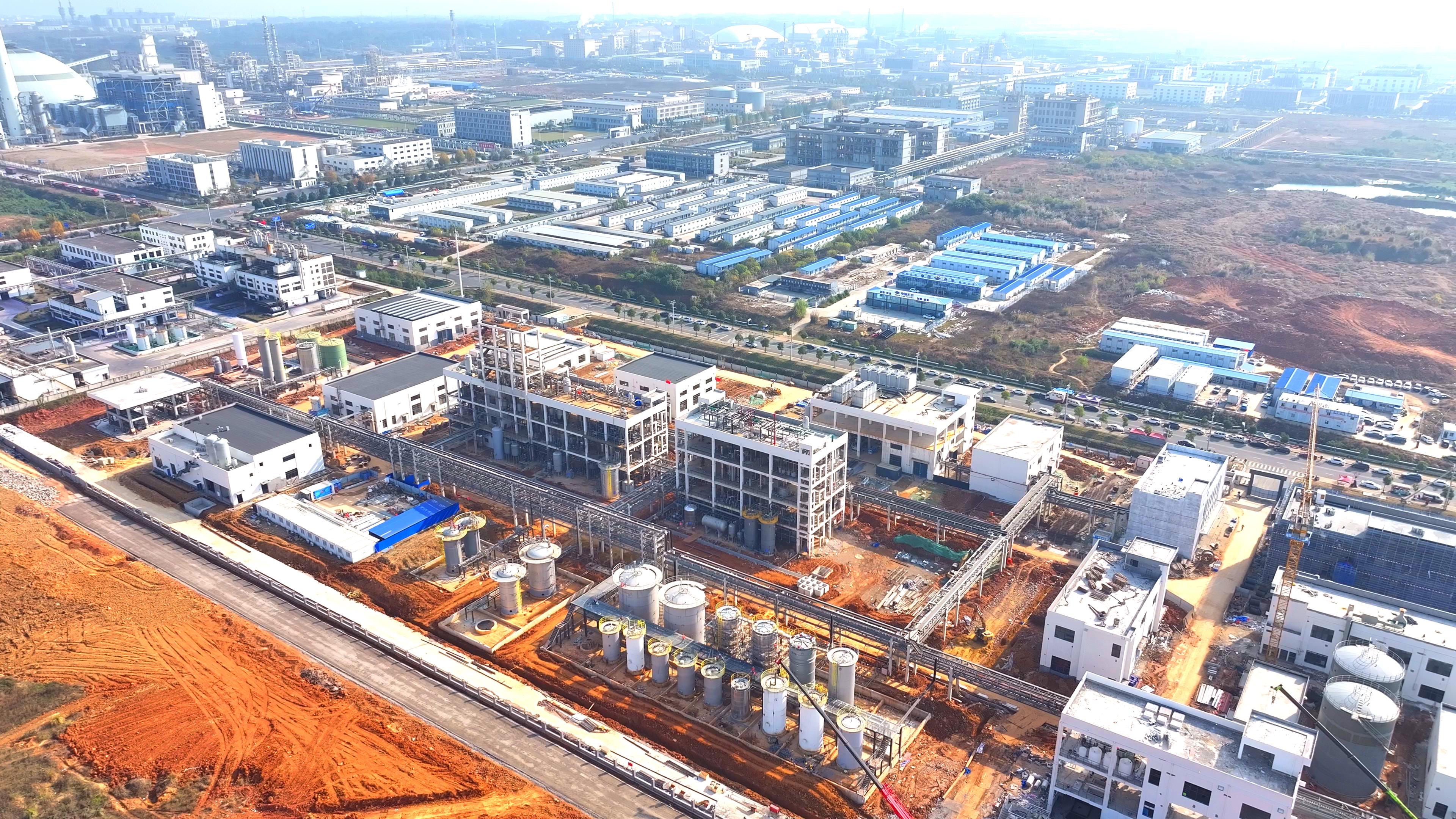 The new-generation lithium battery electrolyte core material project under construction. Photo by Fu WeiAt the park, the new-generation lithium battery electrolyte core material project of Hubei Fusichuang Materials Co., Ltd. is under construction. A material pipeline corridor at the site is scheduled for trial operation next February.