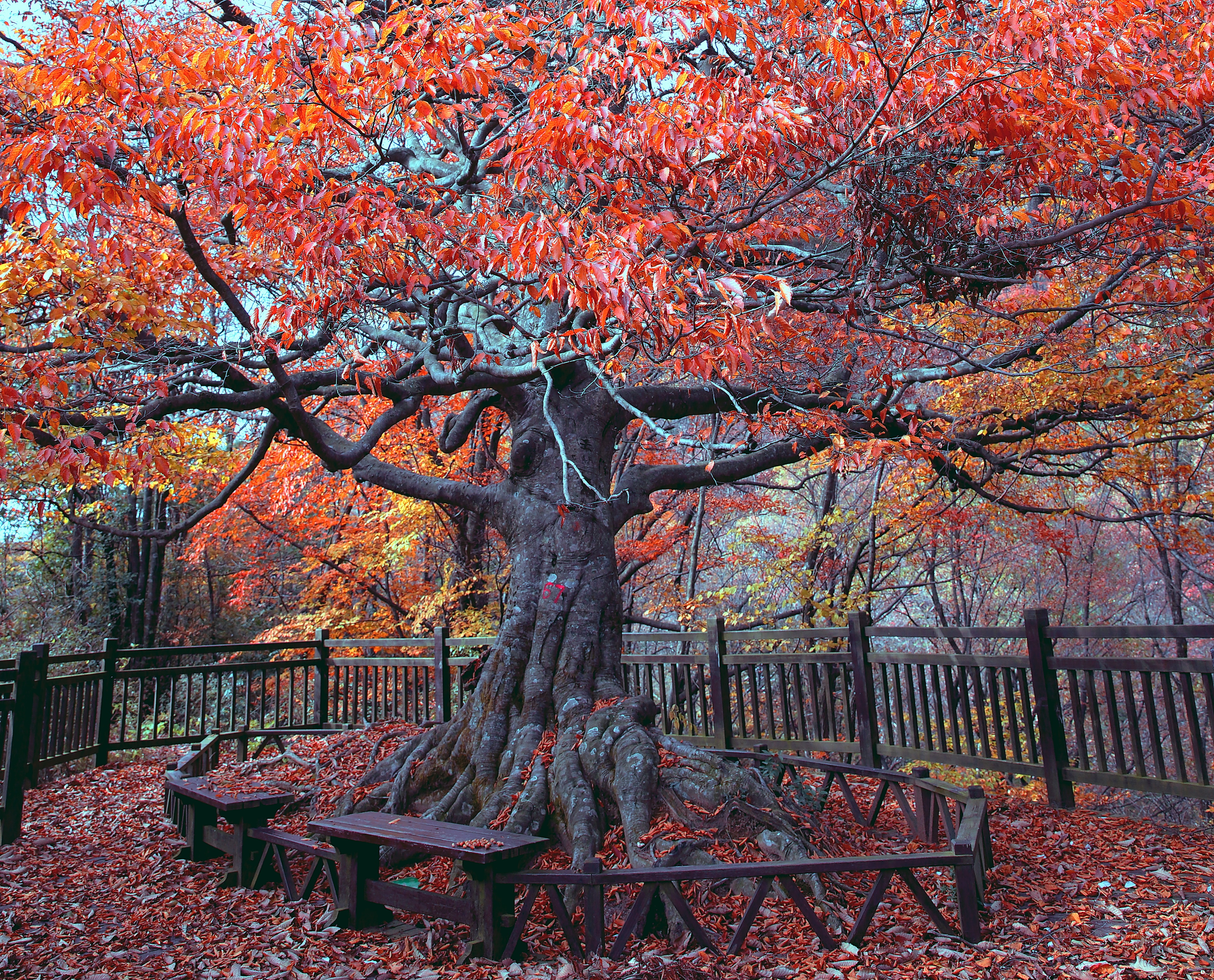 A thousand-year-old Fagus lucida in Hubei Dalaoling National Nature Reserve, carefully monitored and protected as part of the reserve's ancient tree conservation program.