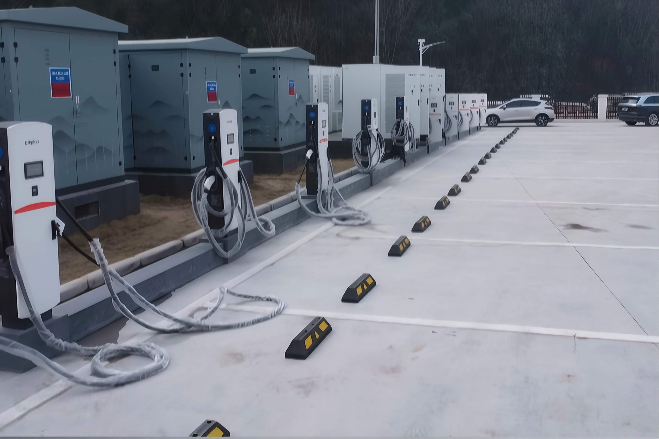 The station provides efficient electricity charging services for new energy trucks transporting phosphate ores. Spanning nearly 9,000 square meters along both sides of the road, it features 28 dual-gun charging piles, each with a maximum power of 500 kW. The station can charge 28 new energy heavy trucks simultaneously, with a daily service capacity of about 300 vehicles.