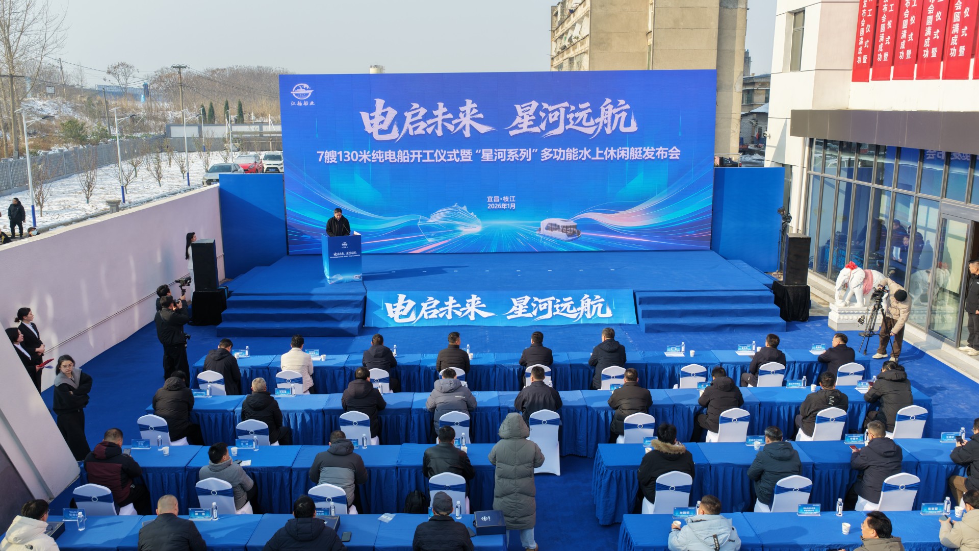 Construction of seven all-electric bulk carriers began on January 22 at Yichang Shipbuilding Industrial Park in Zhijiang. The ceremony also featured the launch of a model of a self-driving pleasure boat, marking a significant advancement in green and intelligent shipbuilding along the Yangtze River.
