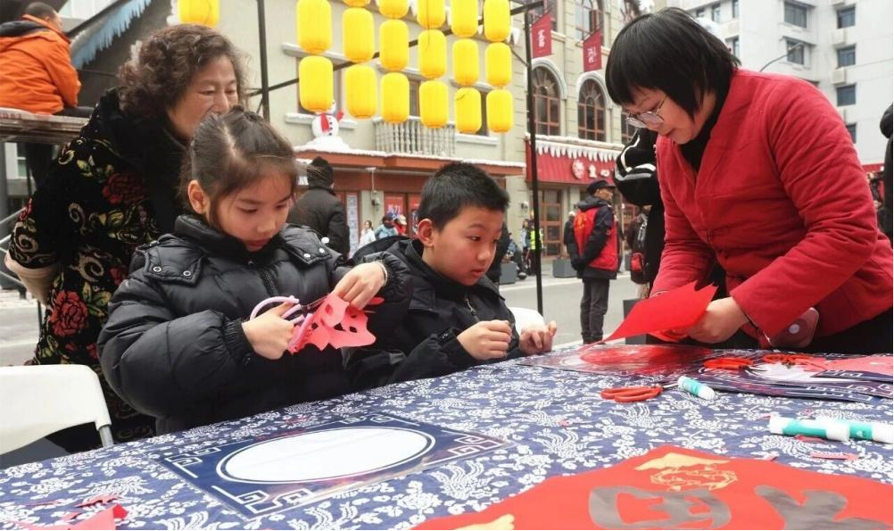 <Caption>Children try their hands at paper cutting. Photo by Wu Yanling.
