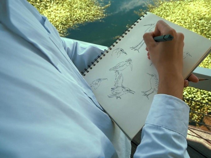 Wang said that the most difficult part of the creative process was mastering the morphological characteristics of birds. Getting to know different types of birds was both a challenge and an adventure for him. Whenever he had free time, he would go to the fields to sketch birds preying, flying and perching, and then return to campus to polish the sketch into an accurate and thorough work by reading books, watching videos, and consulting bird experts.